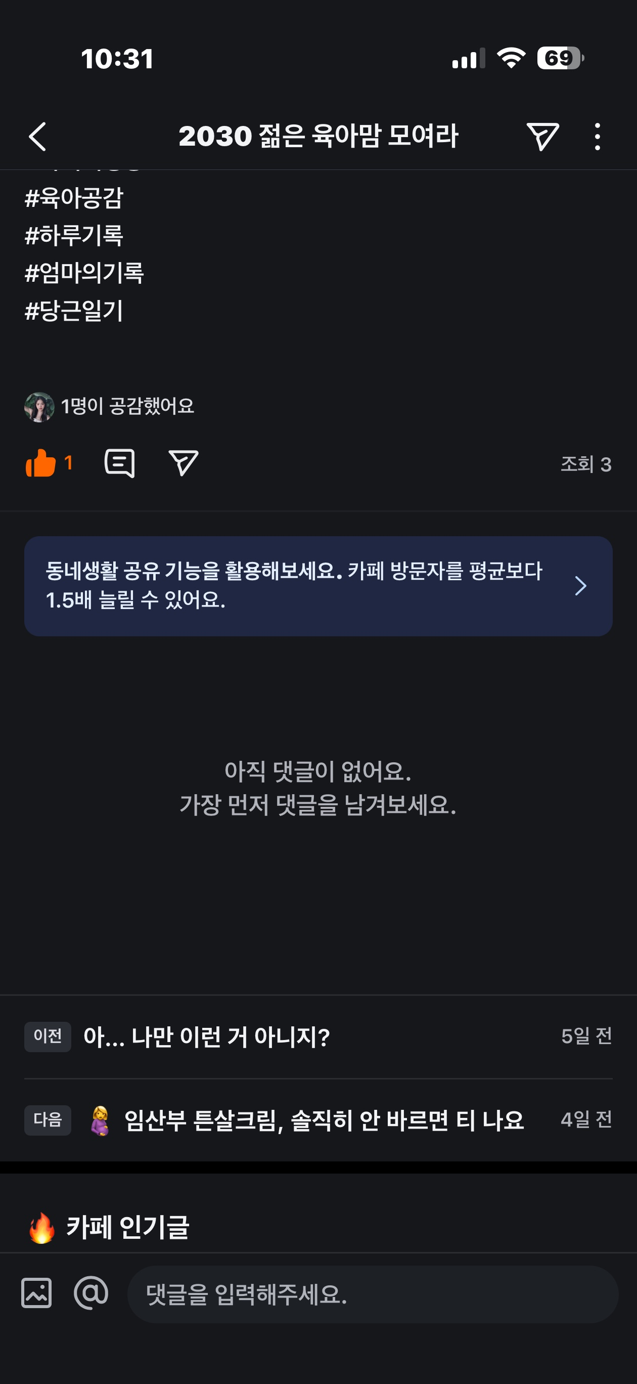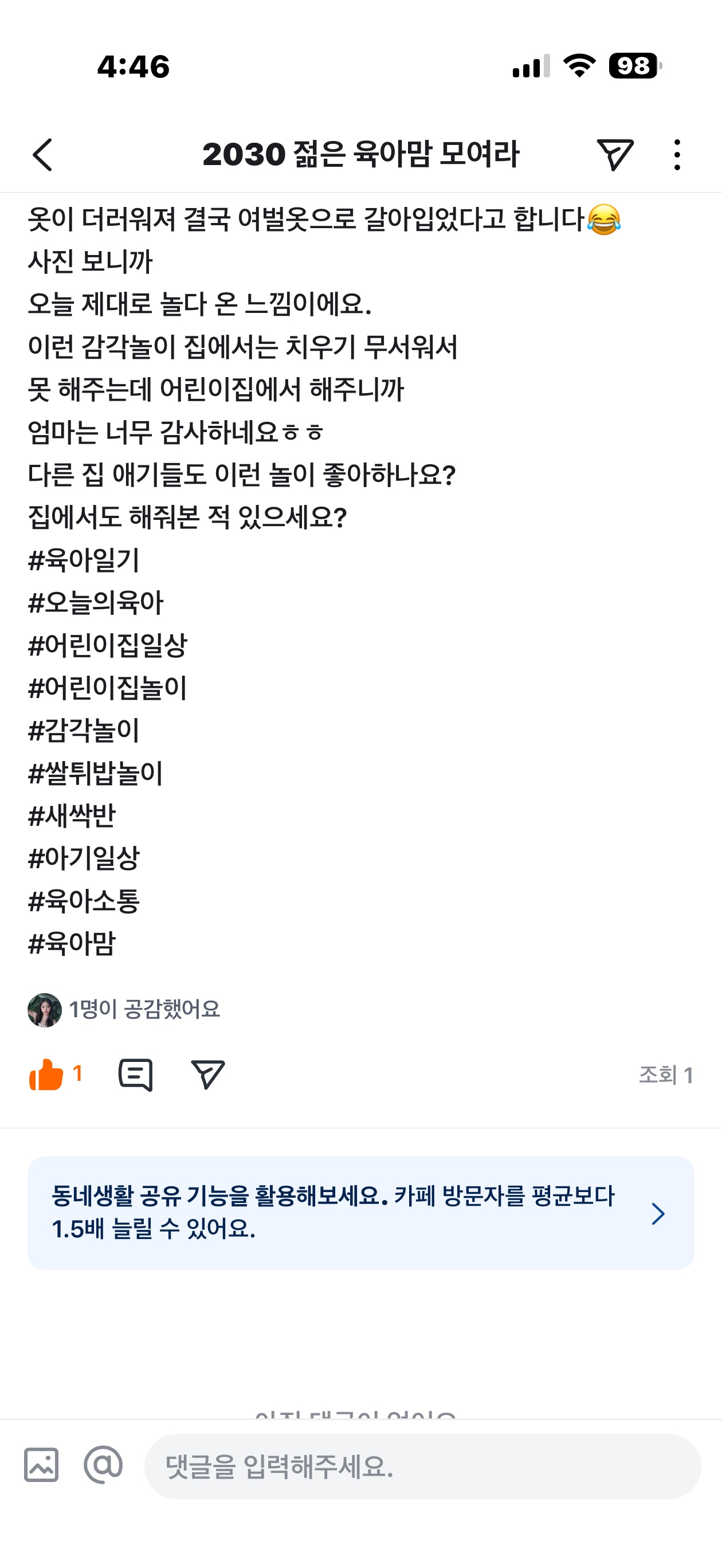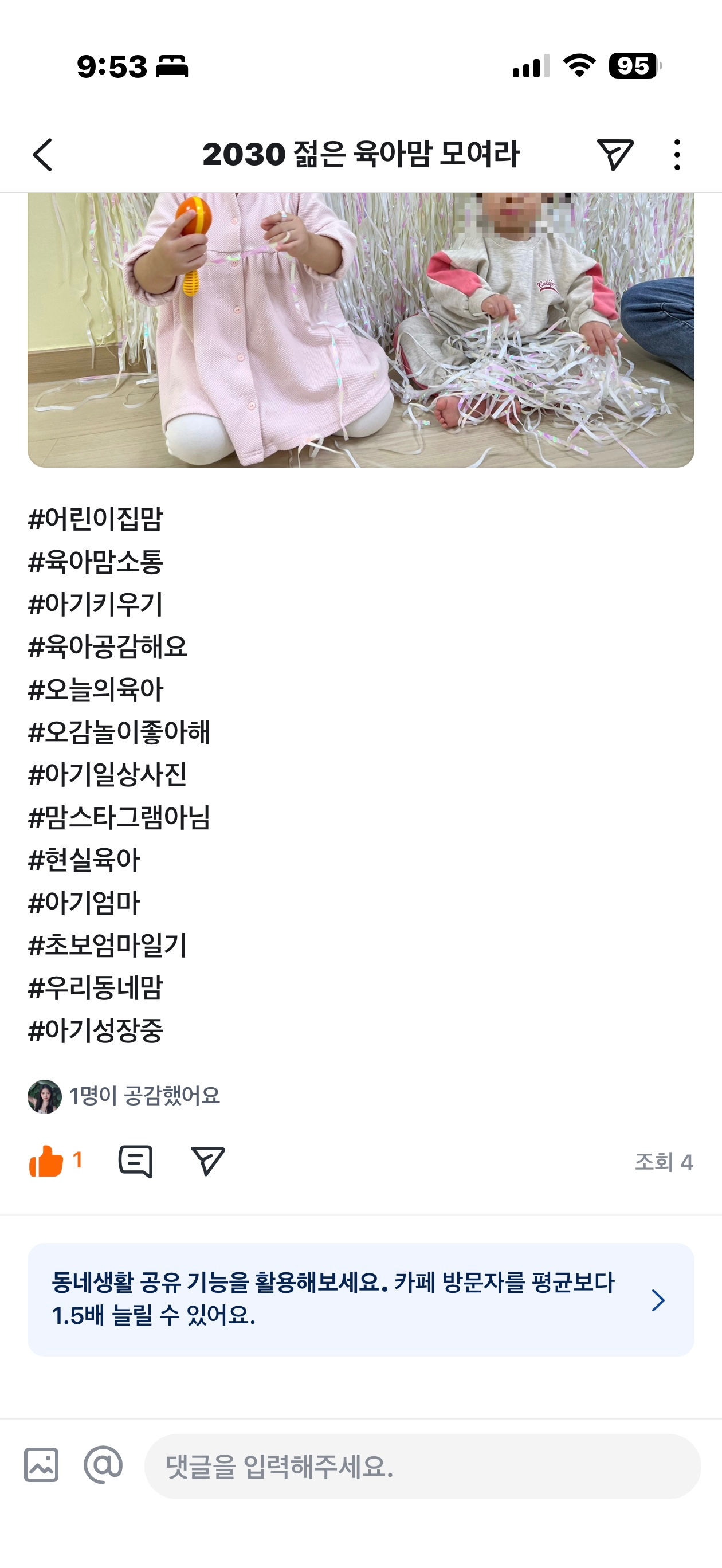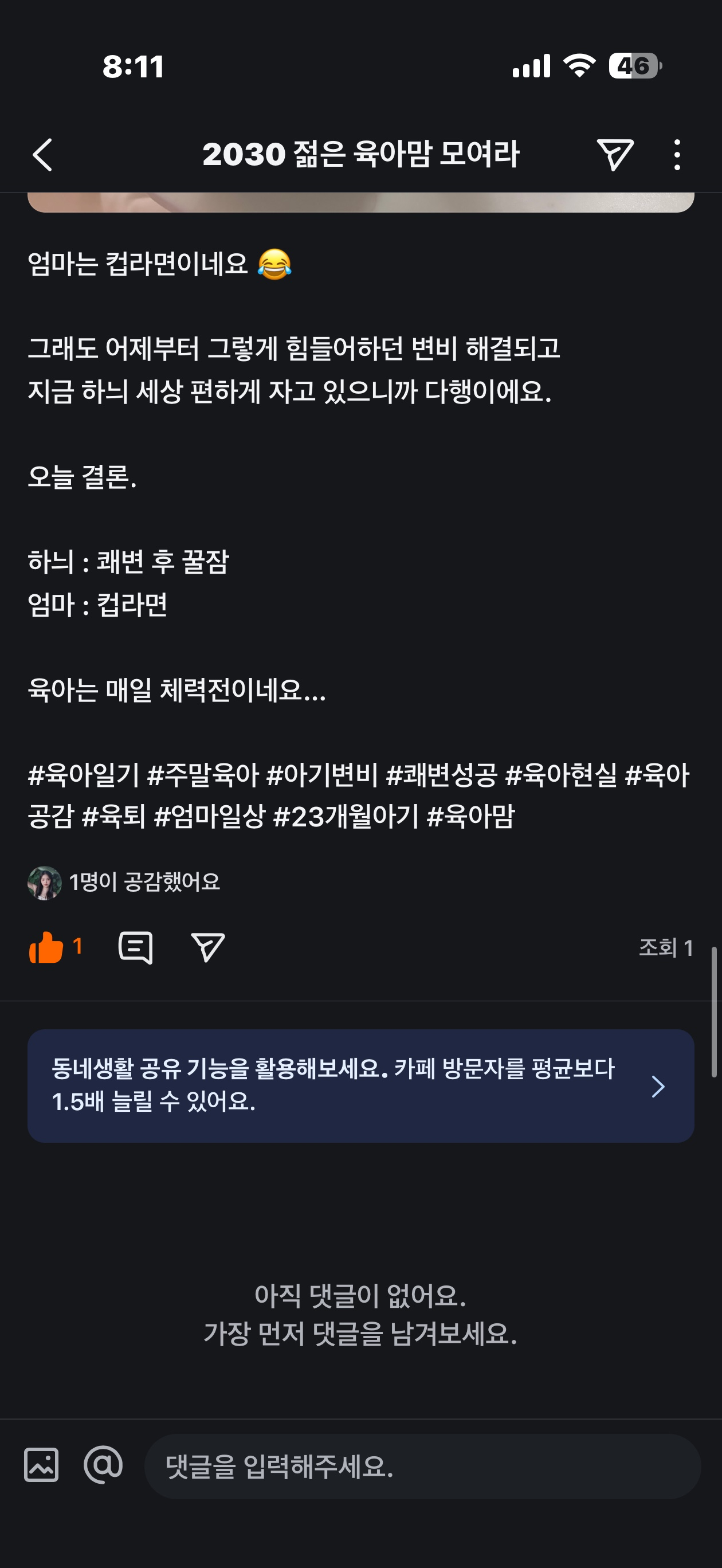 오늘 독박육아로 지금 인증글 올리네영