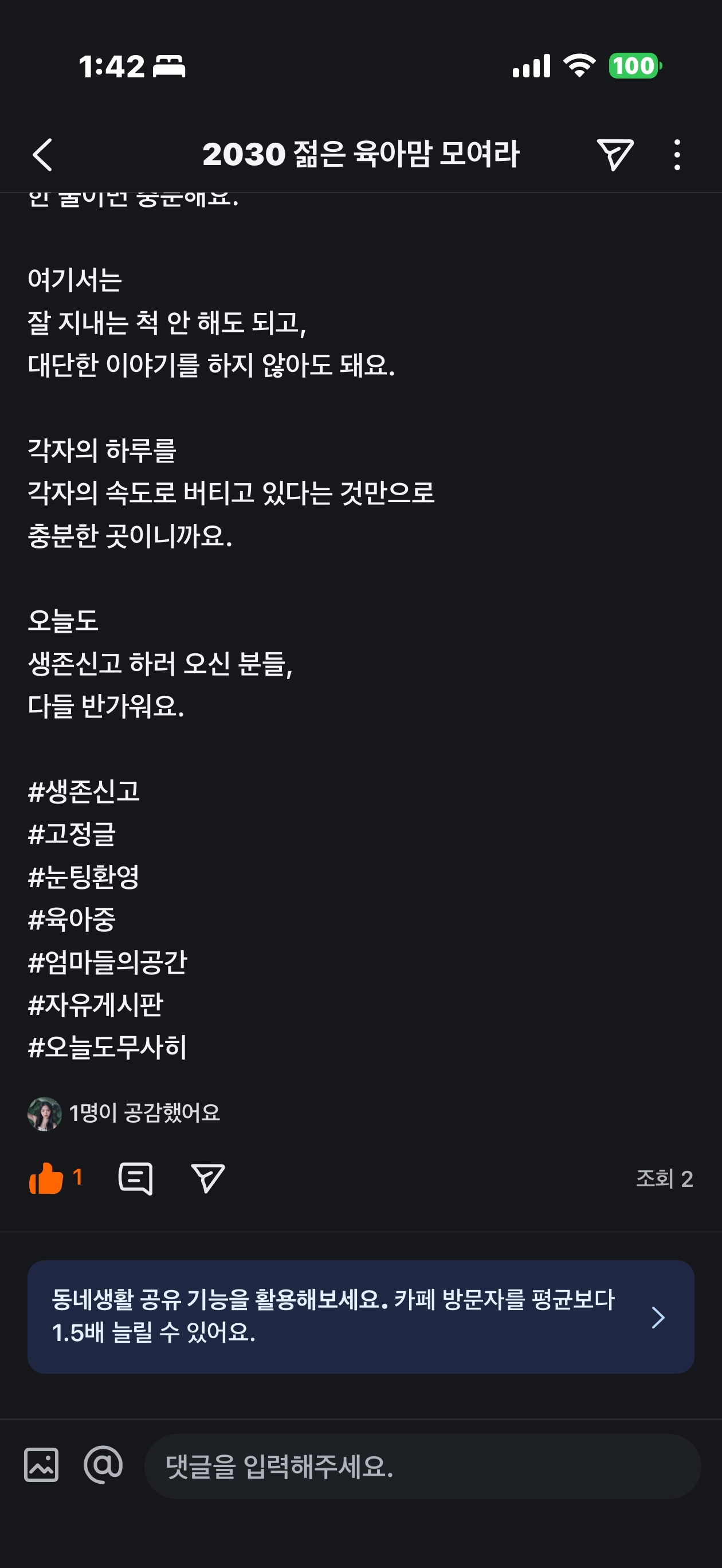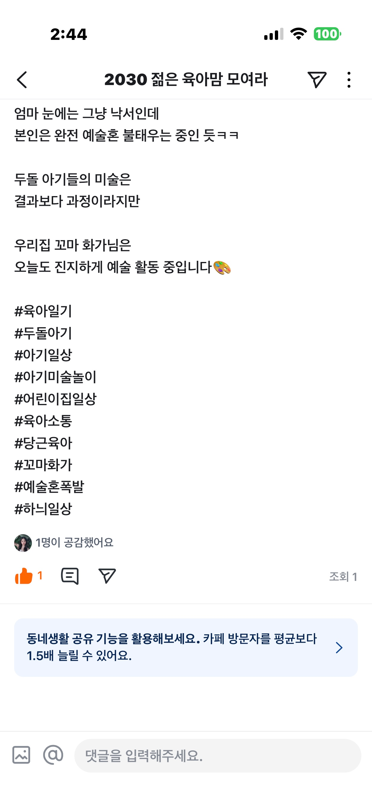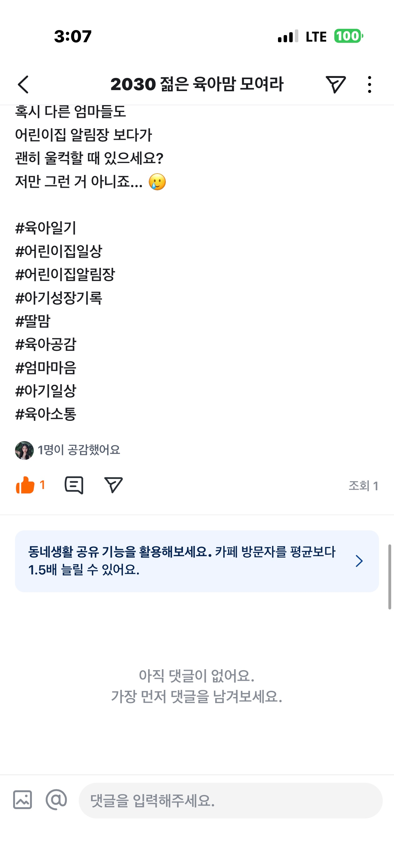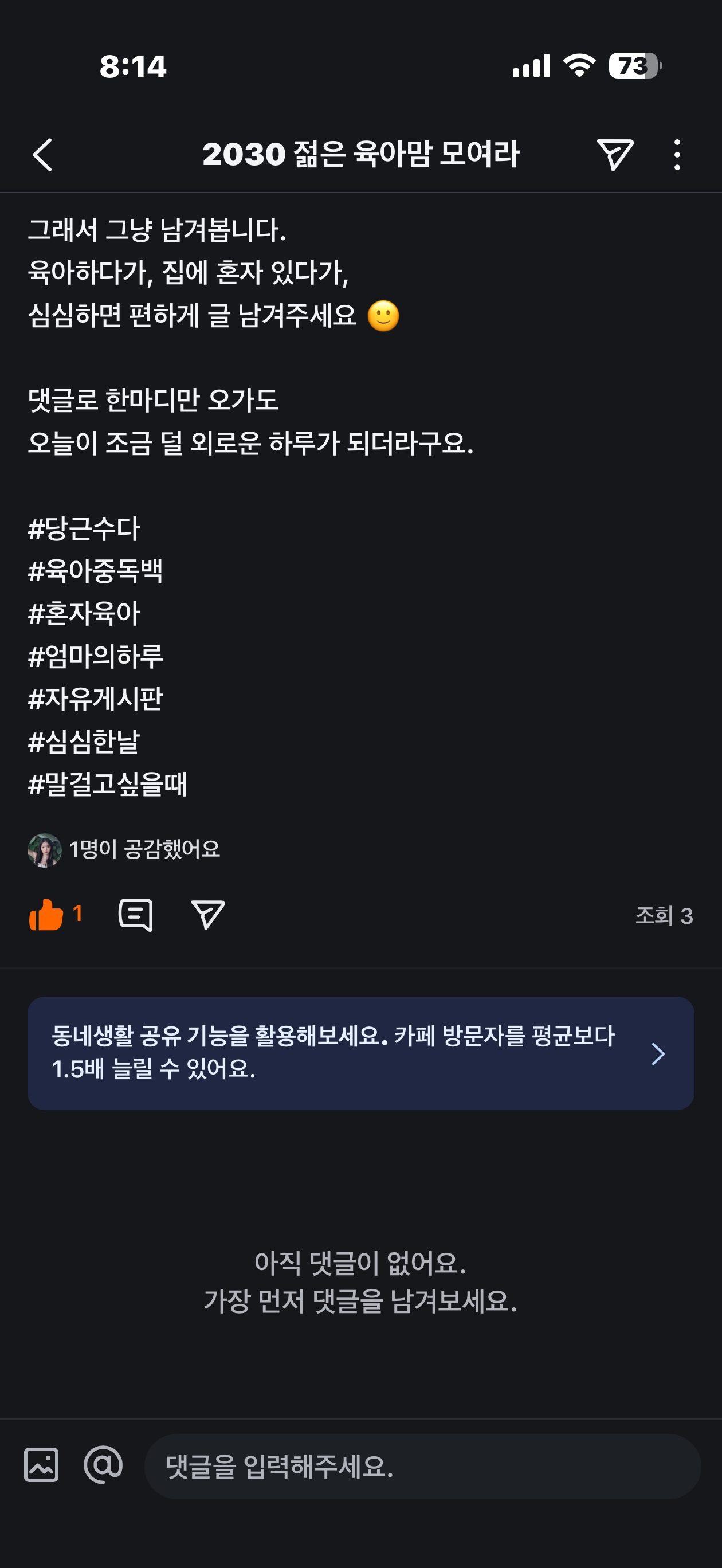오늘 독박육아로 지금 인증글 올리네영
