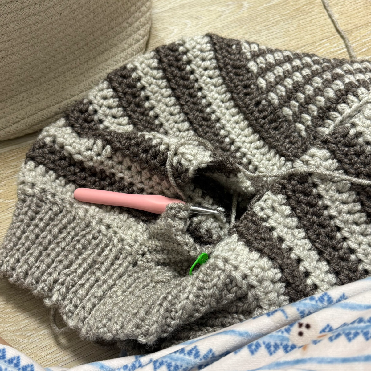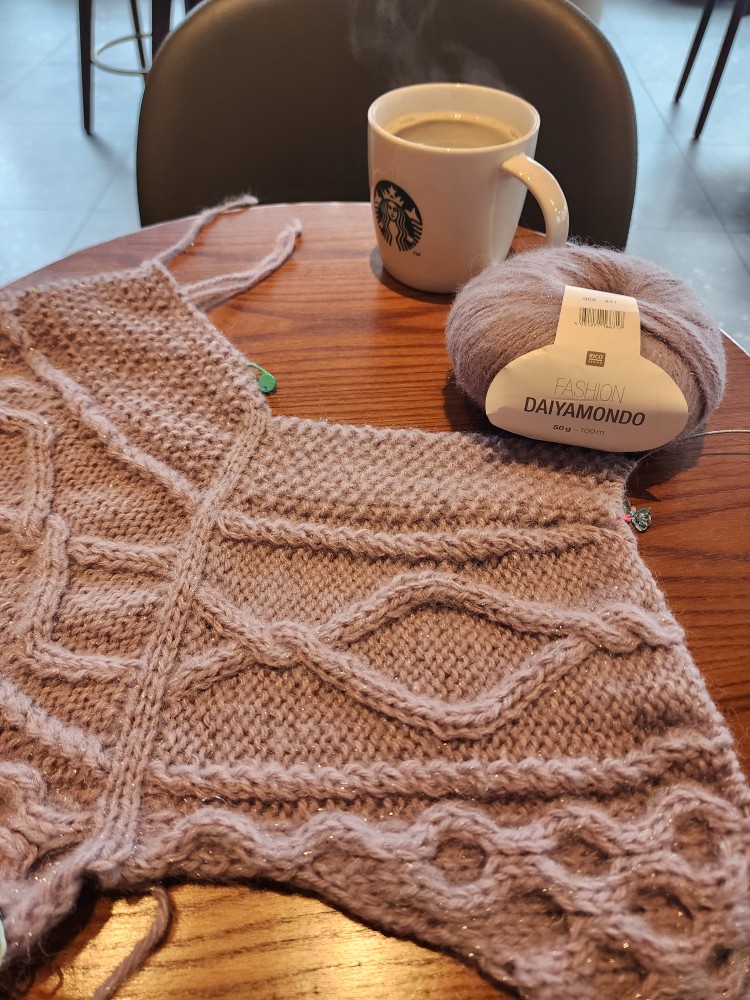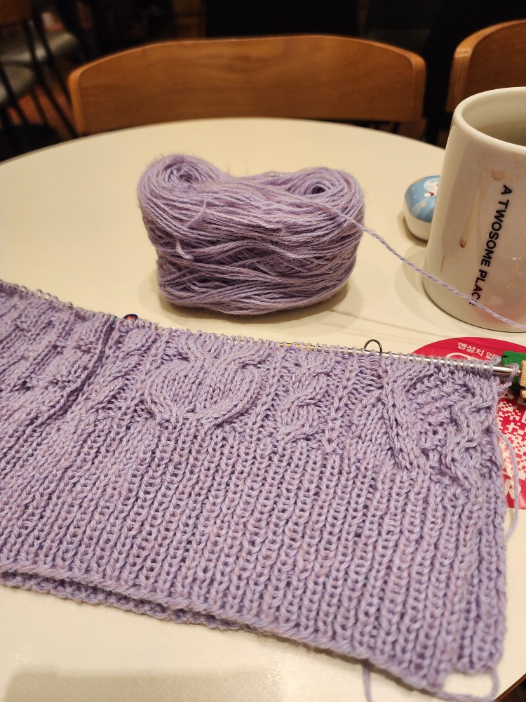 전 지금 저번에 카페에서 소개드렸던 잔물결 스웨터 뜨고 있어요!