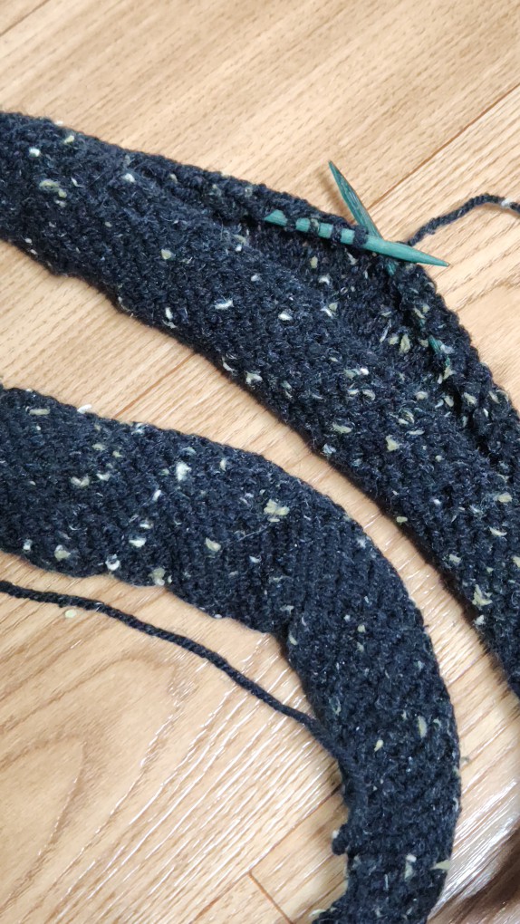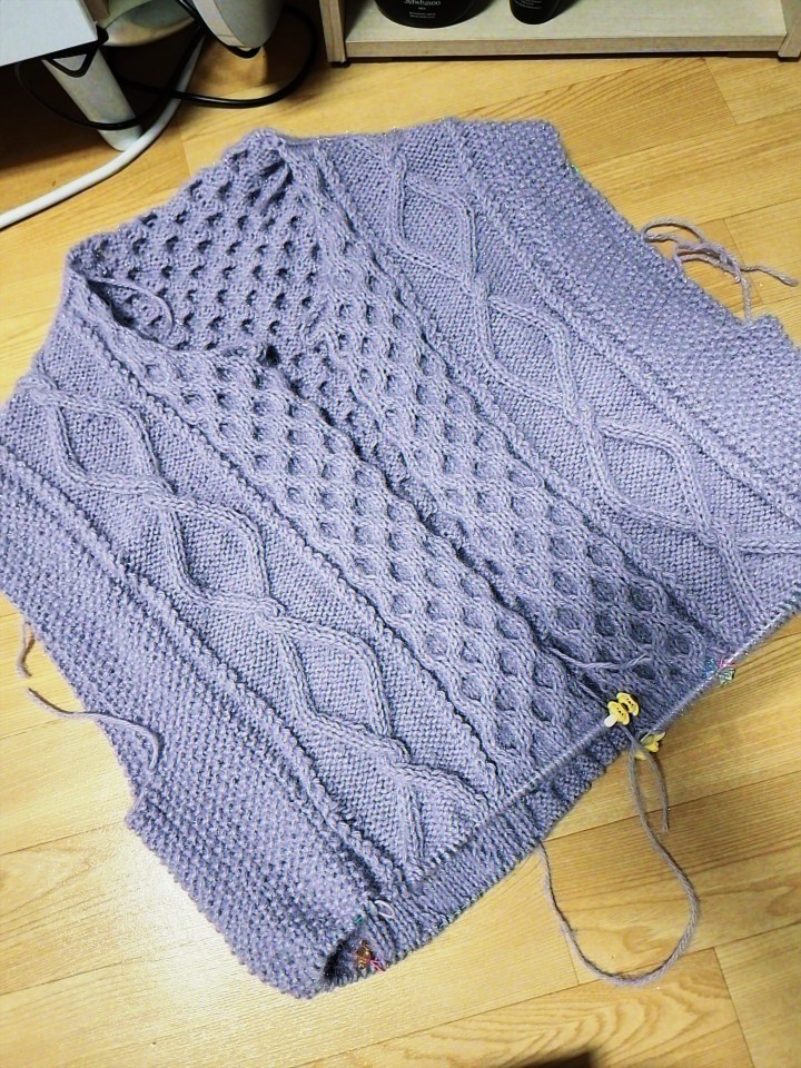 가디건의 등판 부분 뜨고 있어요 ㅎ