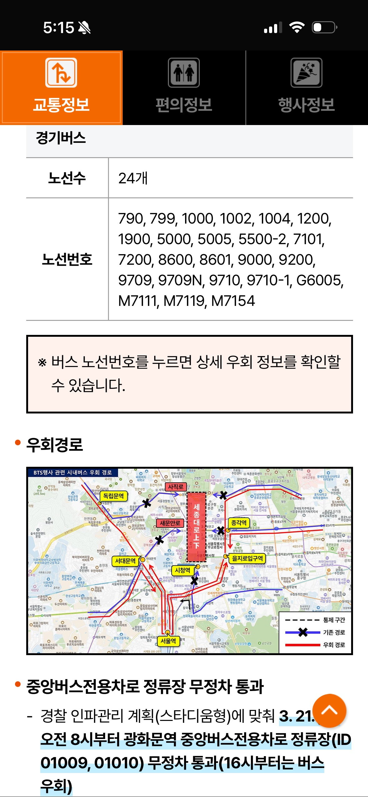 BTS 컴백버스로 경기버스도 우회하네요ㅠ