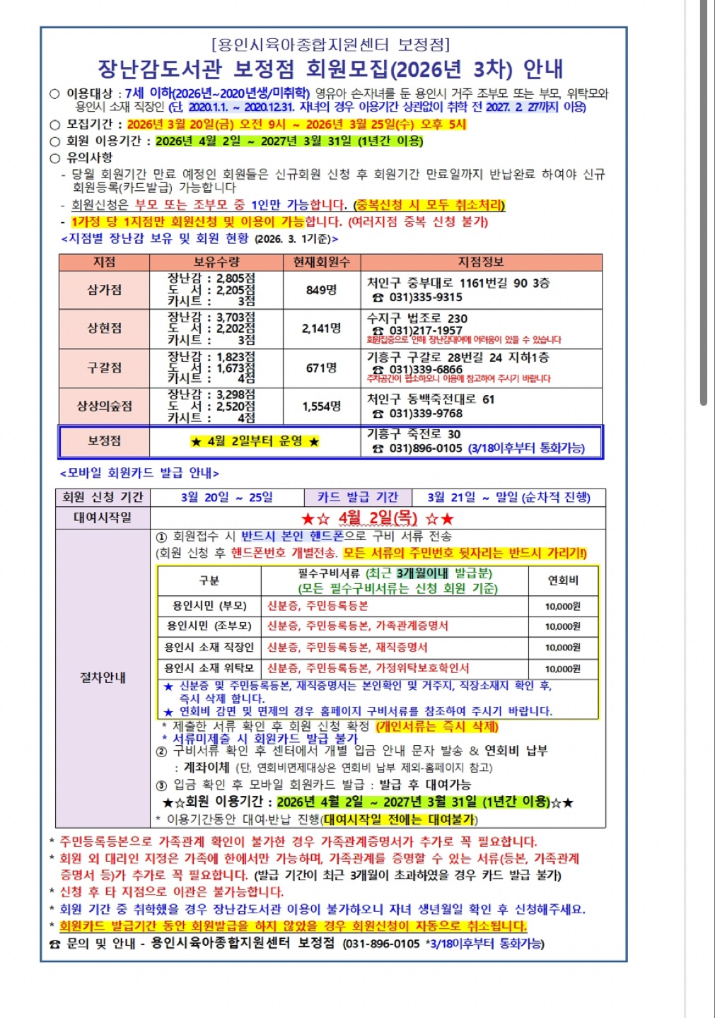 용인 맘들 오늘부터 장난감도서관 보정점 신청이에요