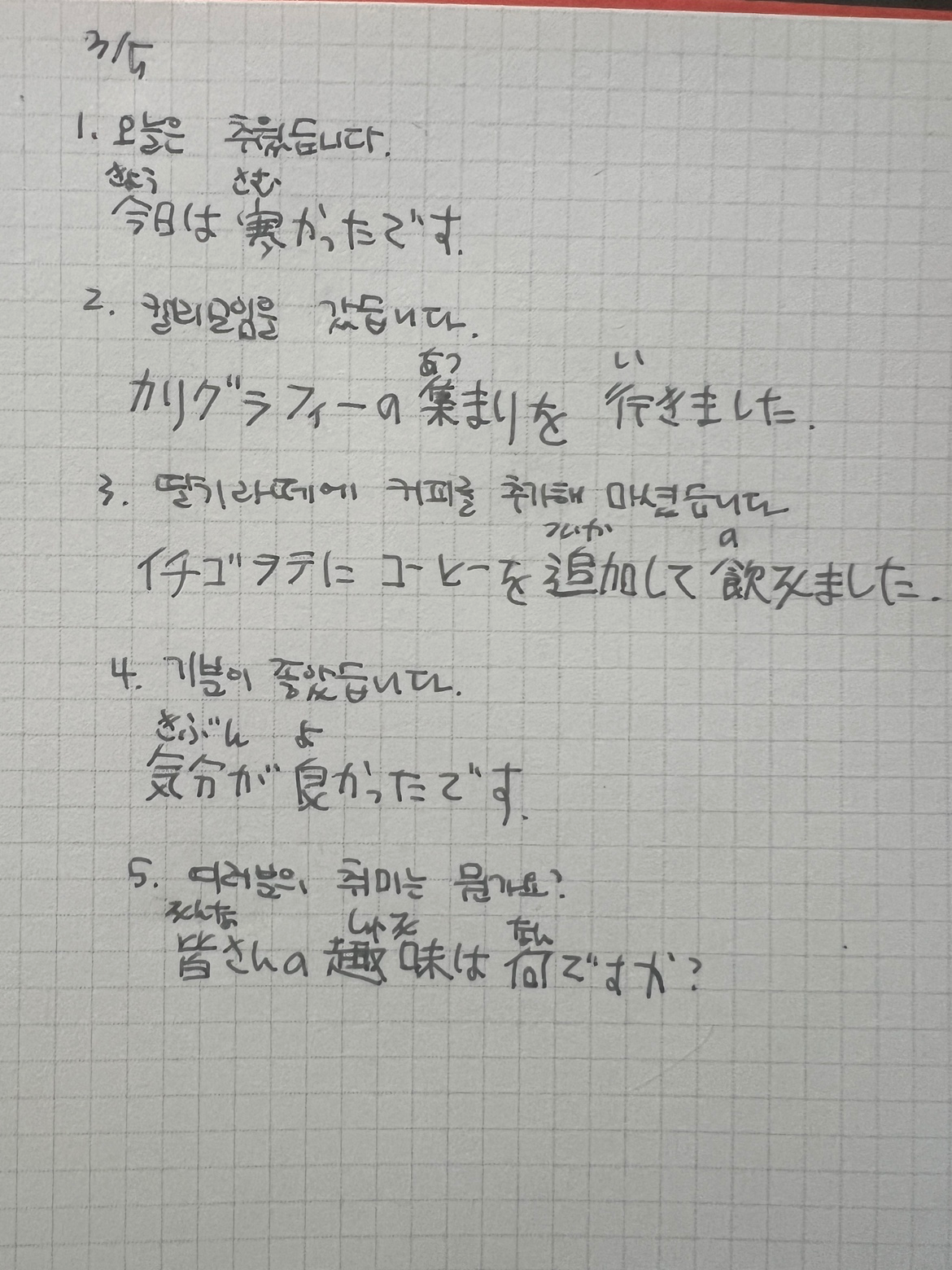 Q. 히라가나 쓰면서 어떤 기분이 드나요? 히라가나는 늘 시험보기 전에 쓰기 때문에