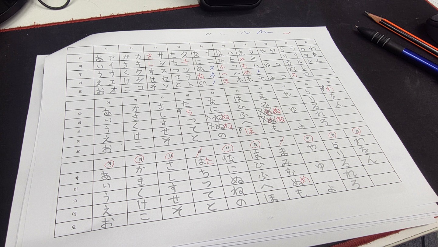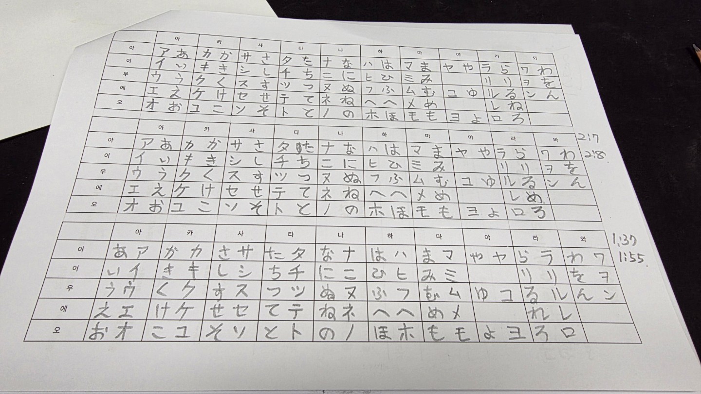어제에 이어서 히라가나 가타가나 연습
