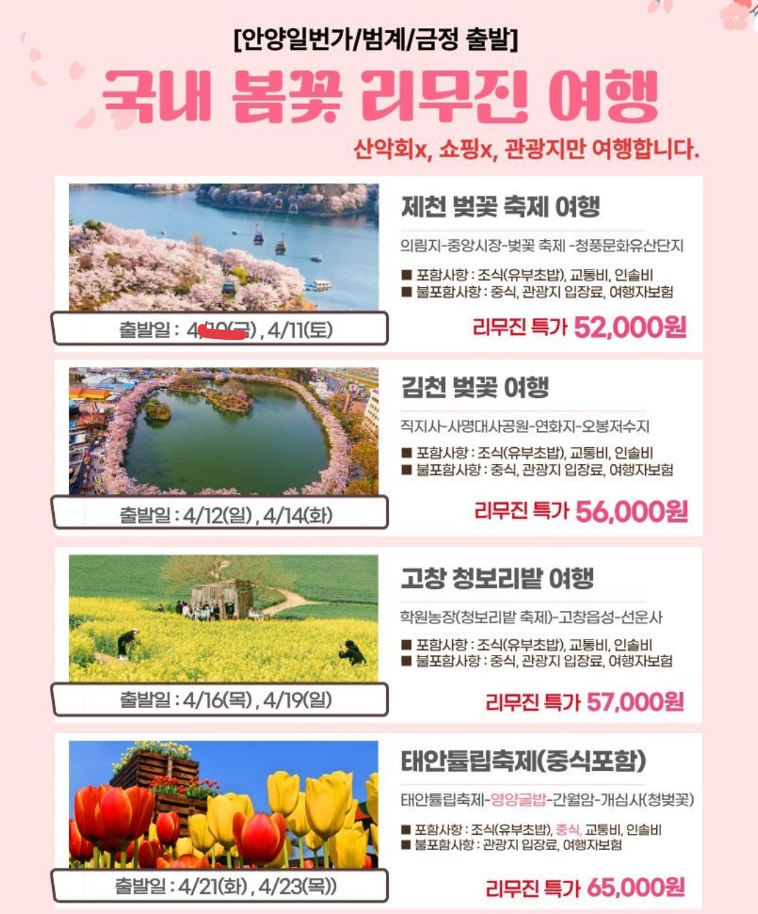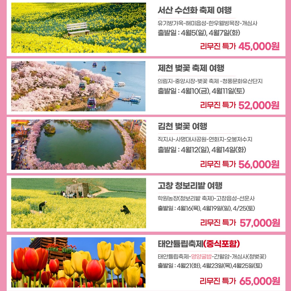 최종‼️4월 국내 봄꽃 리무진 여행 일정표