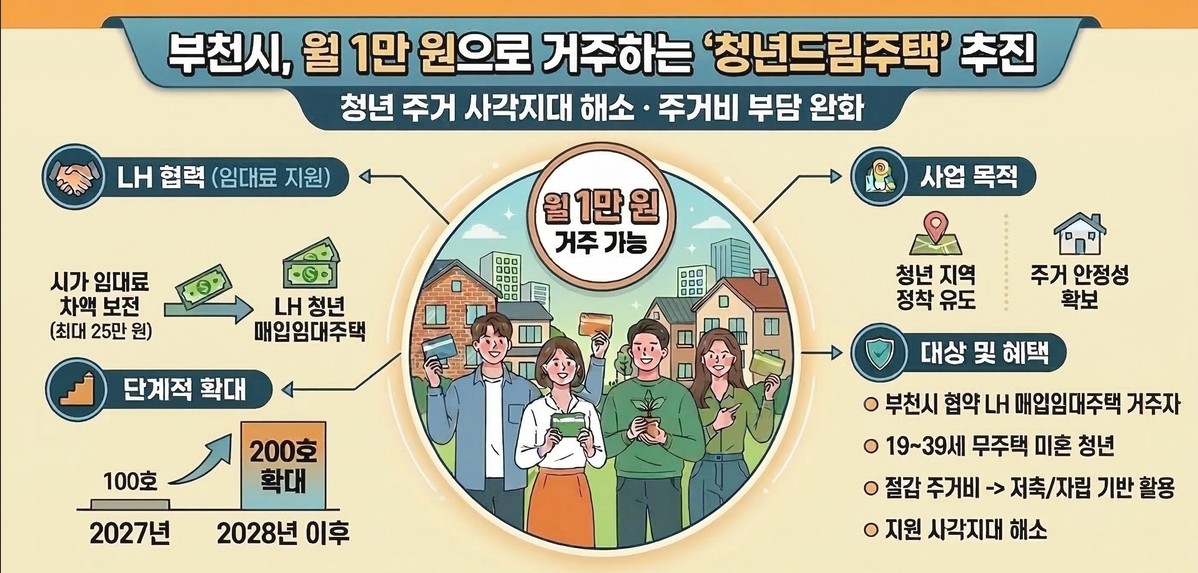 부천시, 월 임대료 1만원 청년드림주택 추진