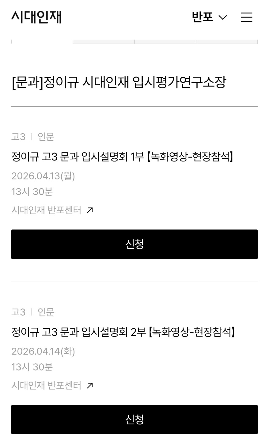시대인재 반포 문과 입시설명회