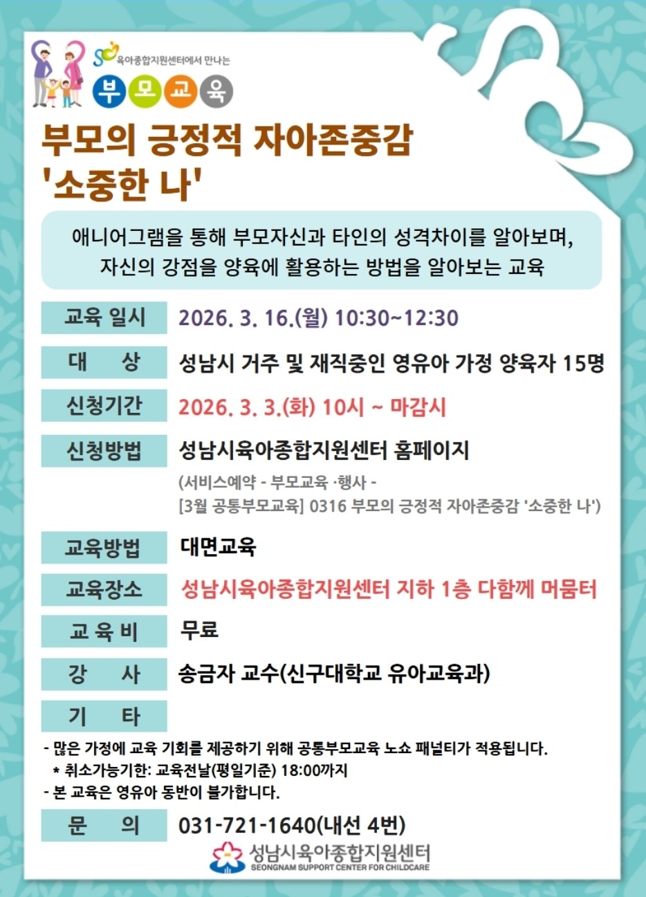 부모 성격 검사 및 양육 방향 교육 선착순 신청