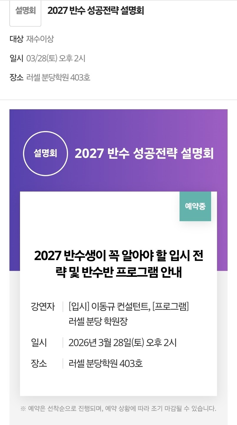 반수 성공 전략 설명회