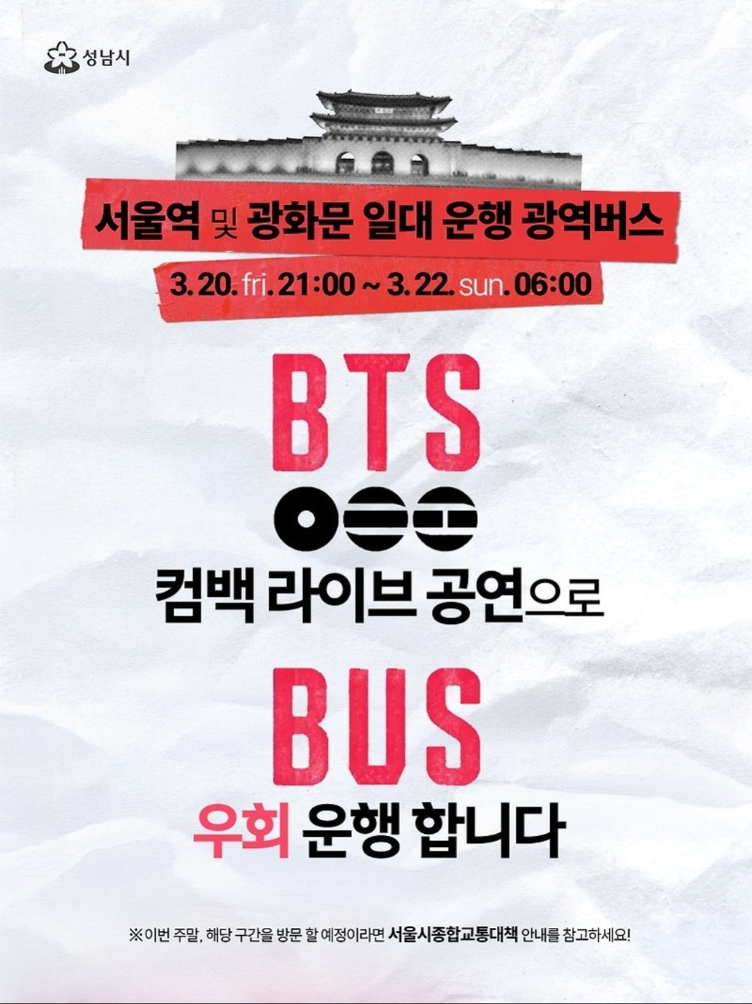 광화문 BTS 공연 관련 종합교통대책 안내