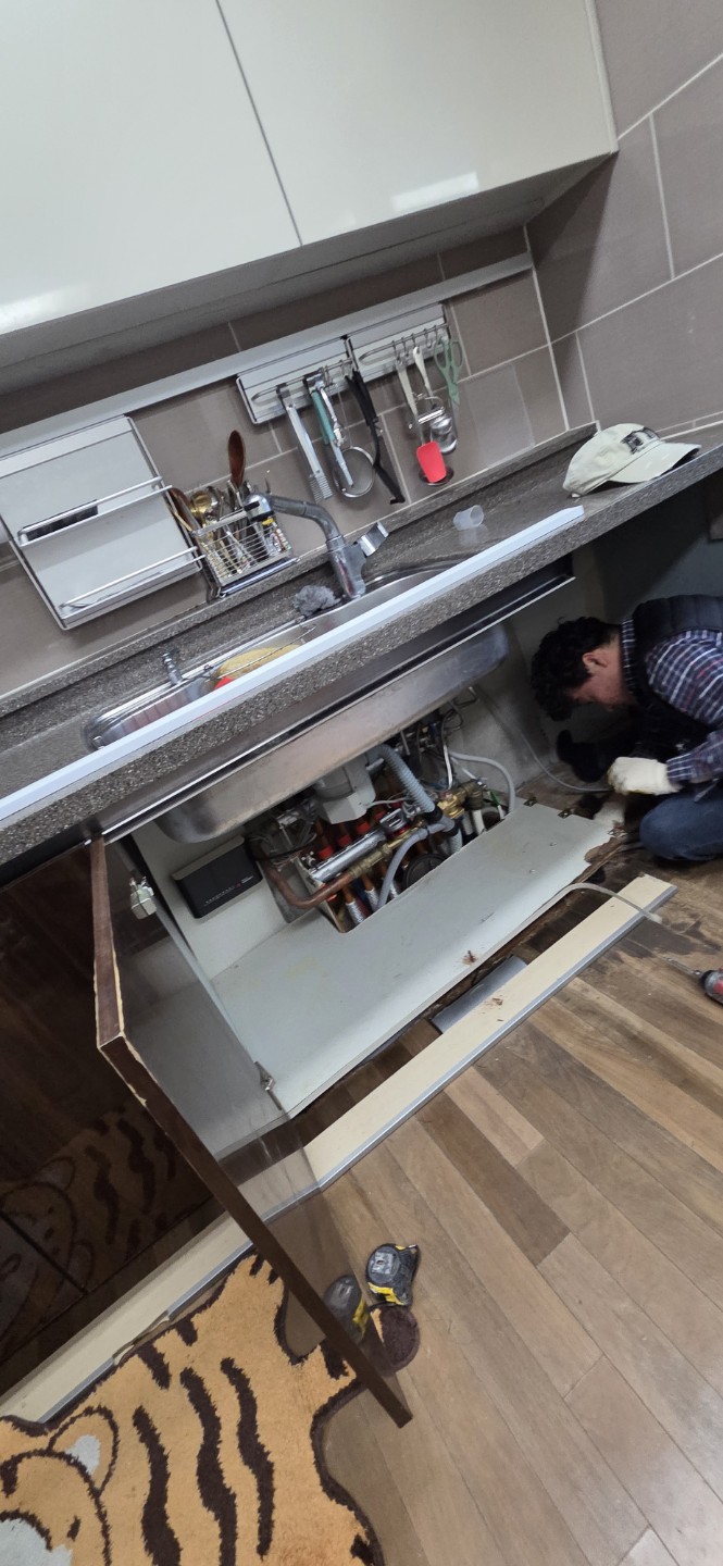 화장실 벽거리 선반 거울장 철거후. 시공