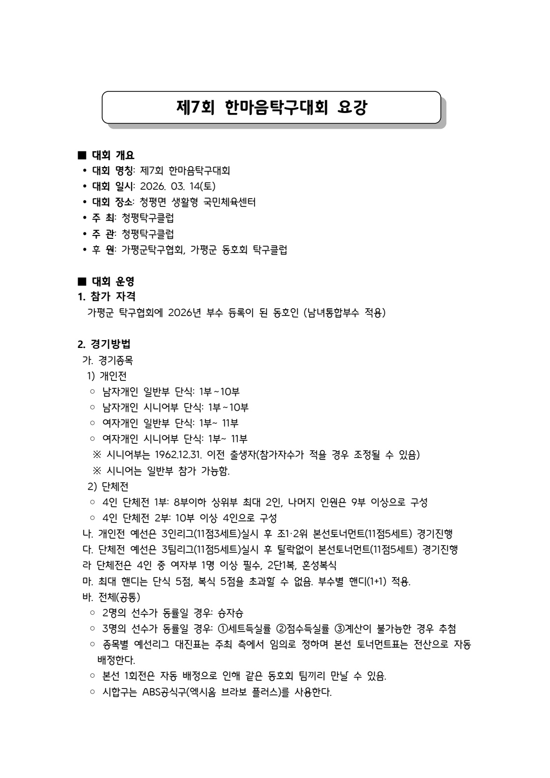 청평탁구등록스포츠클럽 | 당근 카페