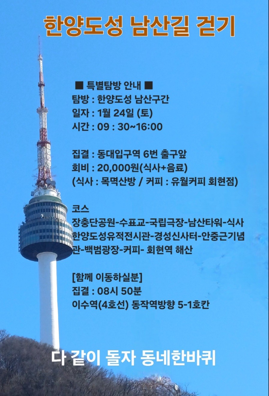 1월 24일, 한양도성 남산길 걷기 안내