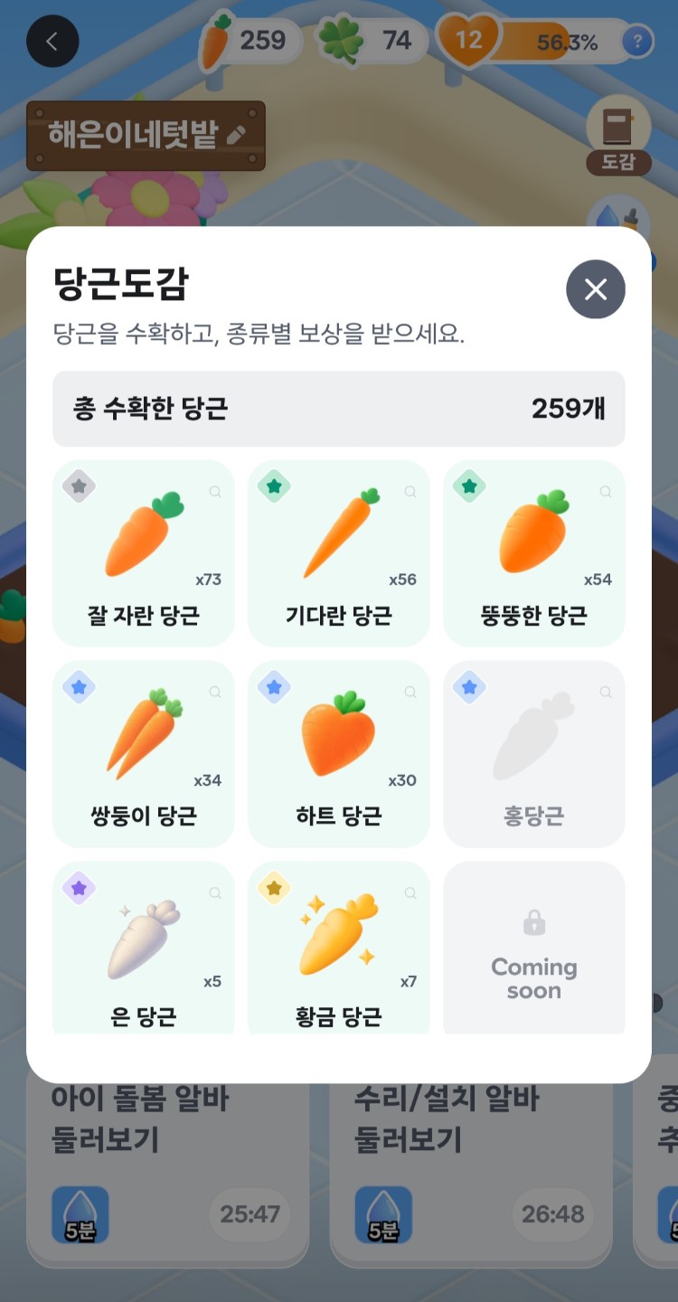 당근쏙쏙 고르기 보상 이건 아니죠