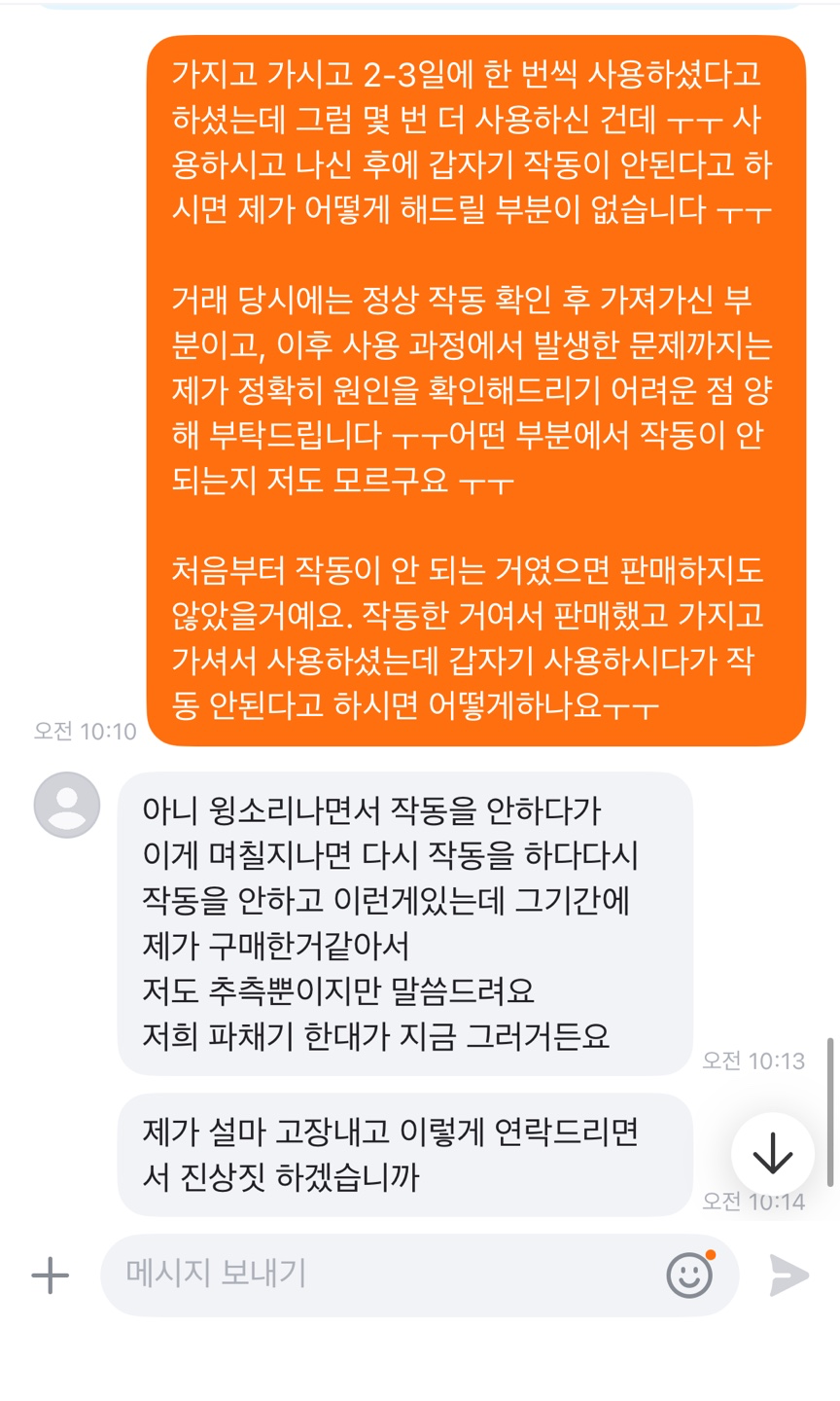 2주지났는데 쇼핑몰도아니고 새제품 살 돈은 안되나봐요ㅎㅎ 저런사람들은 그냥 답도안해줘야겠다 배워가네요ㅠ
