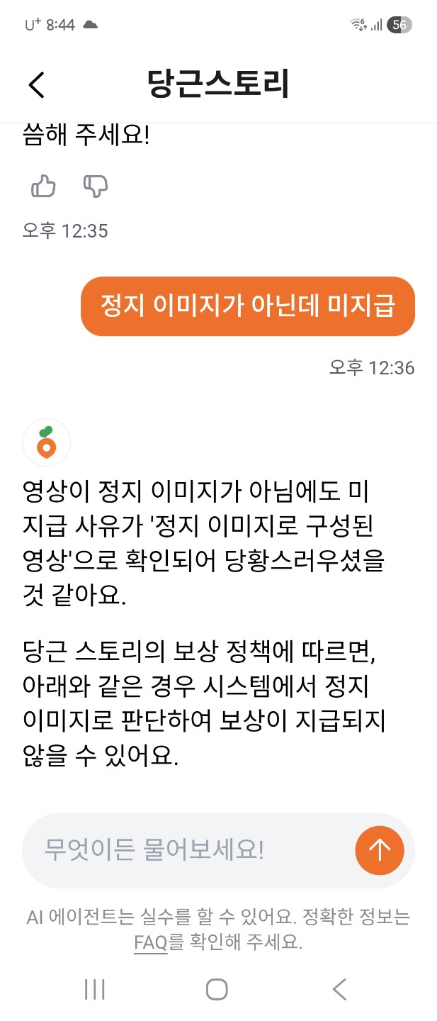 영상당 즉시지급 당근머니가 아직 지급이 안됐습니다