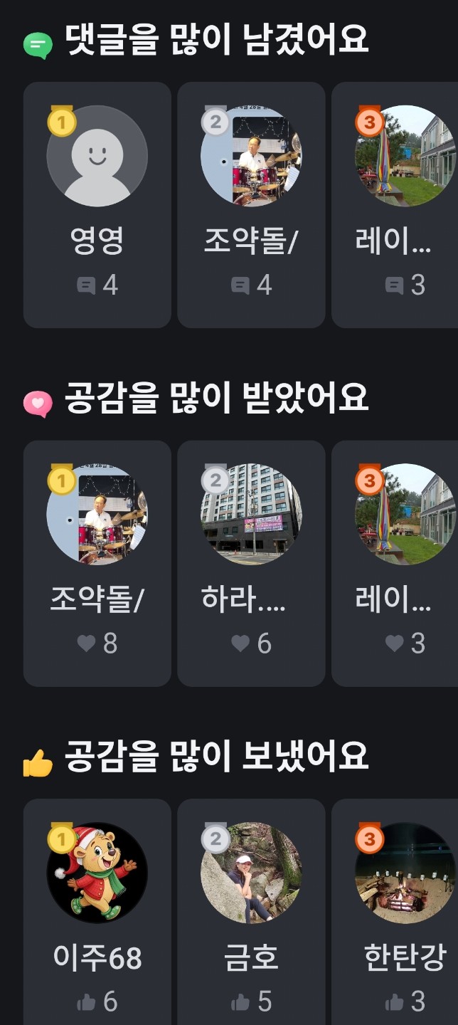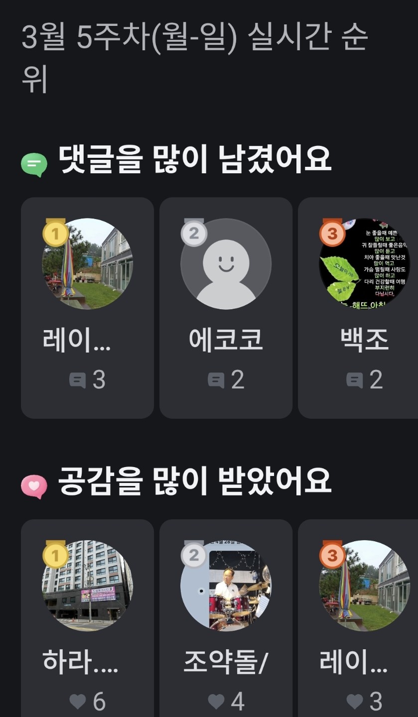 5주차 소통 많이 하신분들 수고하셨습니다