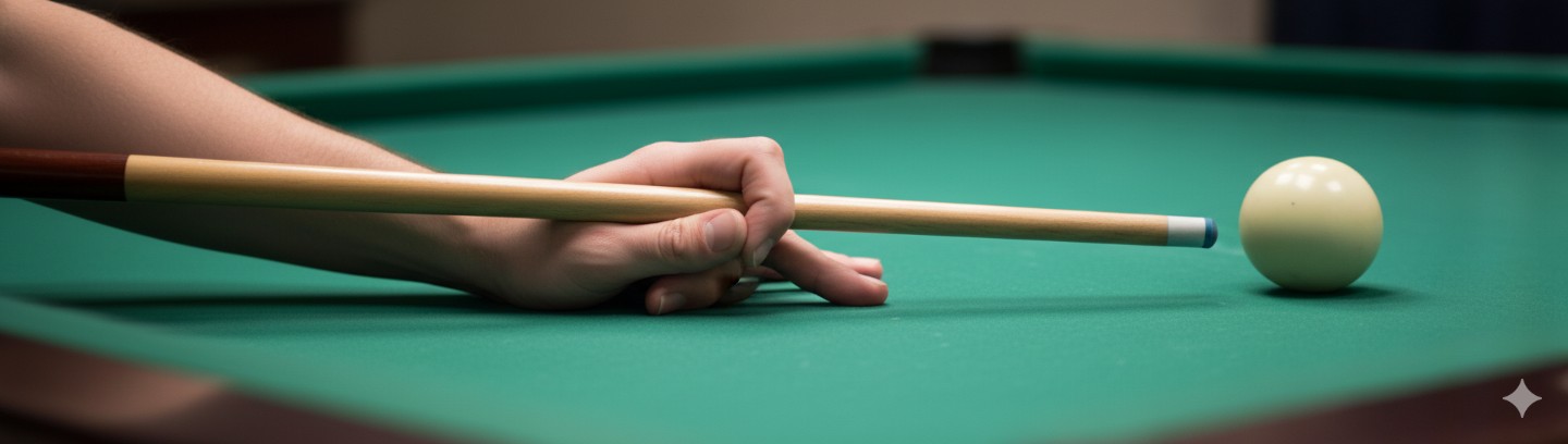 ③엄지로 고정: 엄지손가락을 중지나 검지 첫째 마디에 밀착시켜 큐가 나갈 길을 견고하게 지지합니다.