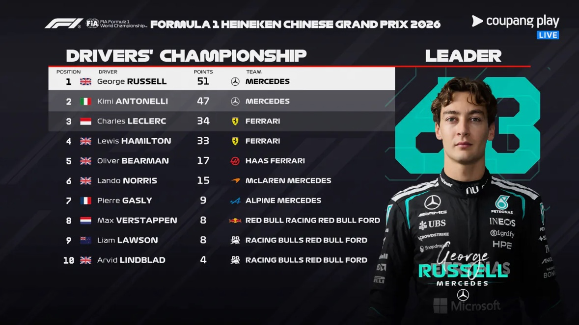 F1 드챔,컨챔 현재 순위