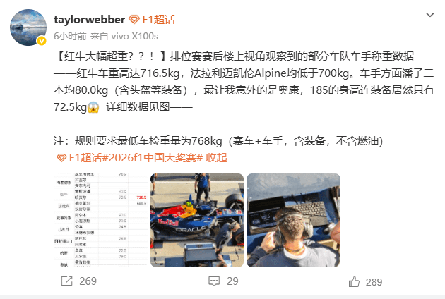 [루머] 레드불 차량이 느린 이유? 스프린트 후 포착된 716.5kg 차량 무게