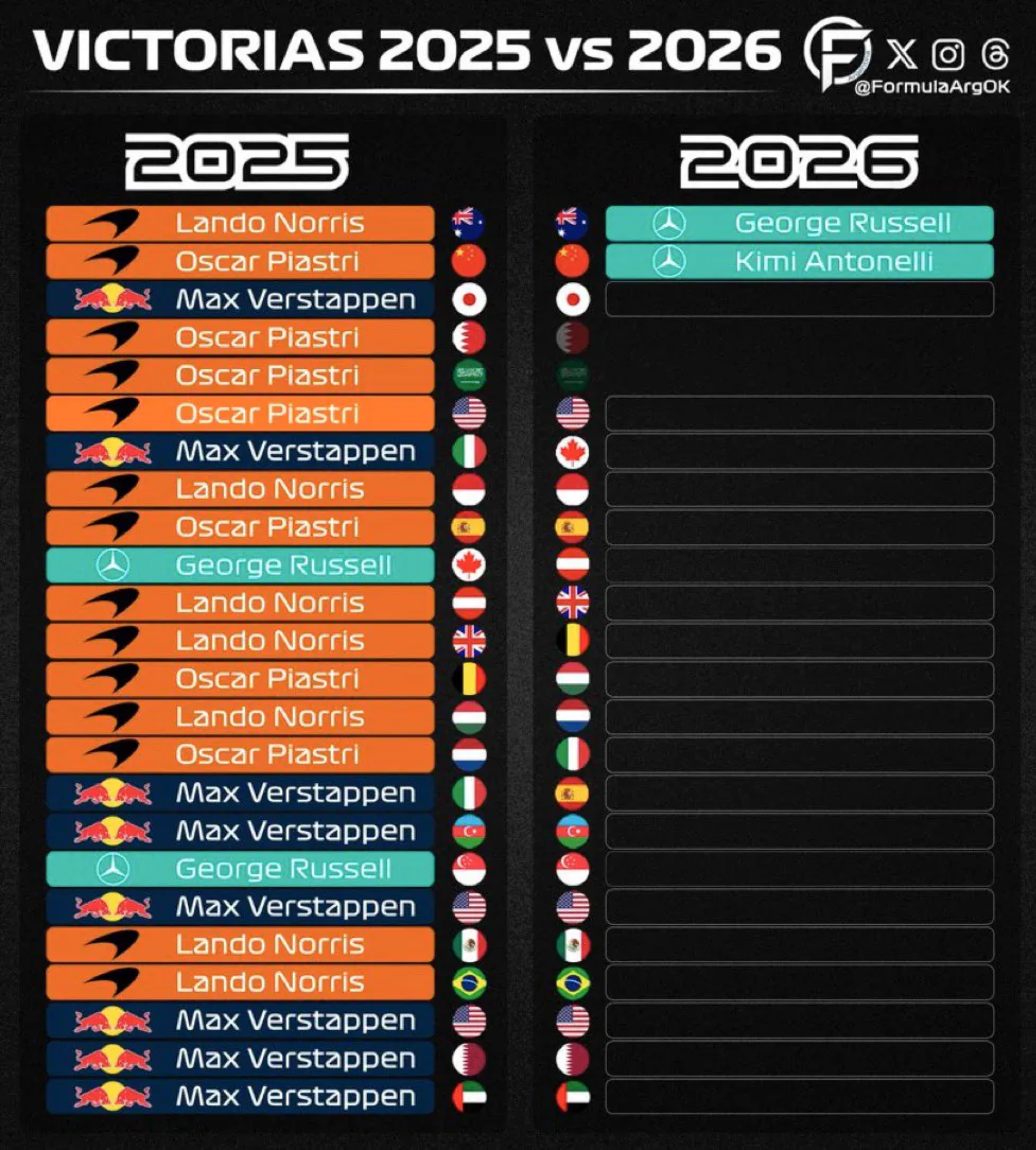 F1 2025년 vs 2026년 우승자 비교