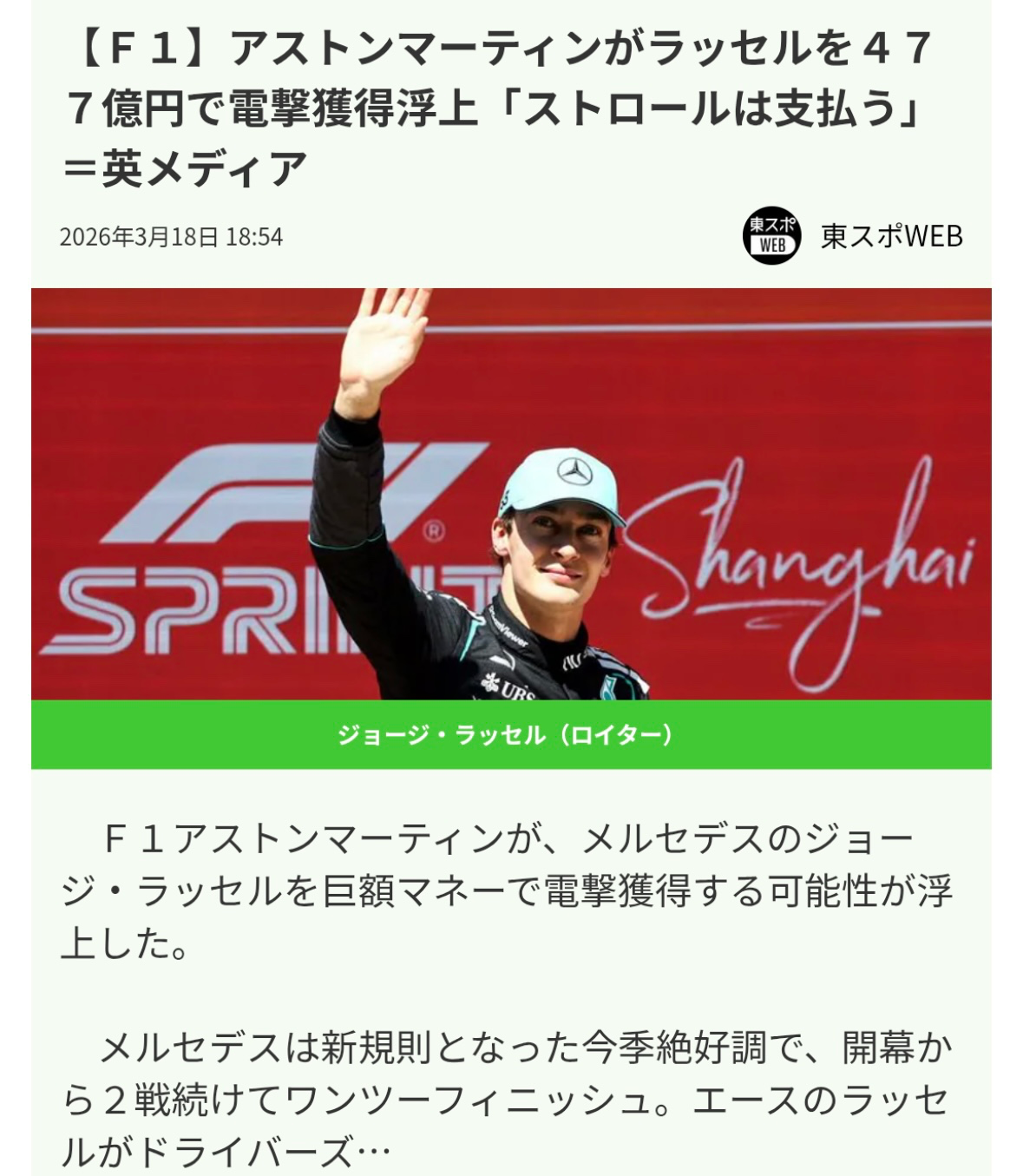 [루머] 애스턴 마틴, 러셀 영입설
