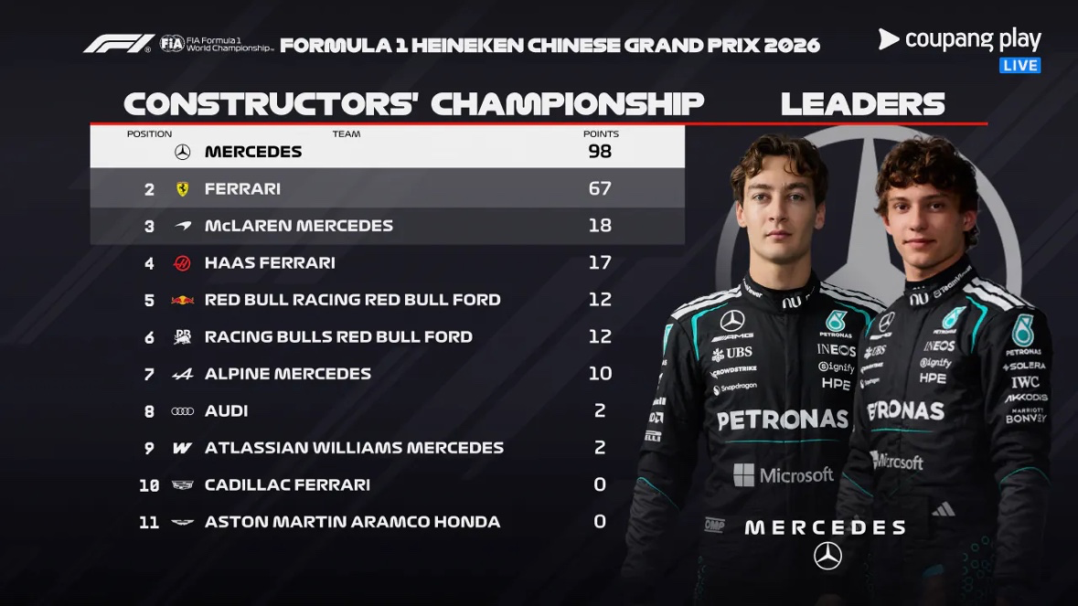 F1 드챔,컨챔 현재 순위