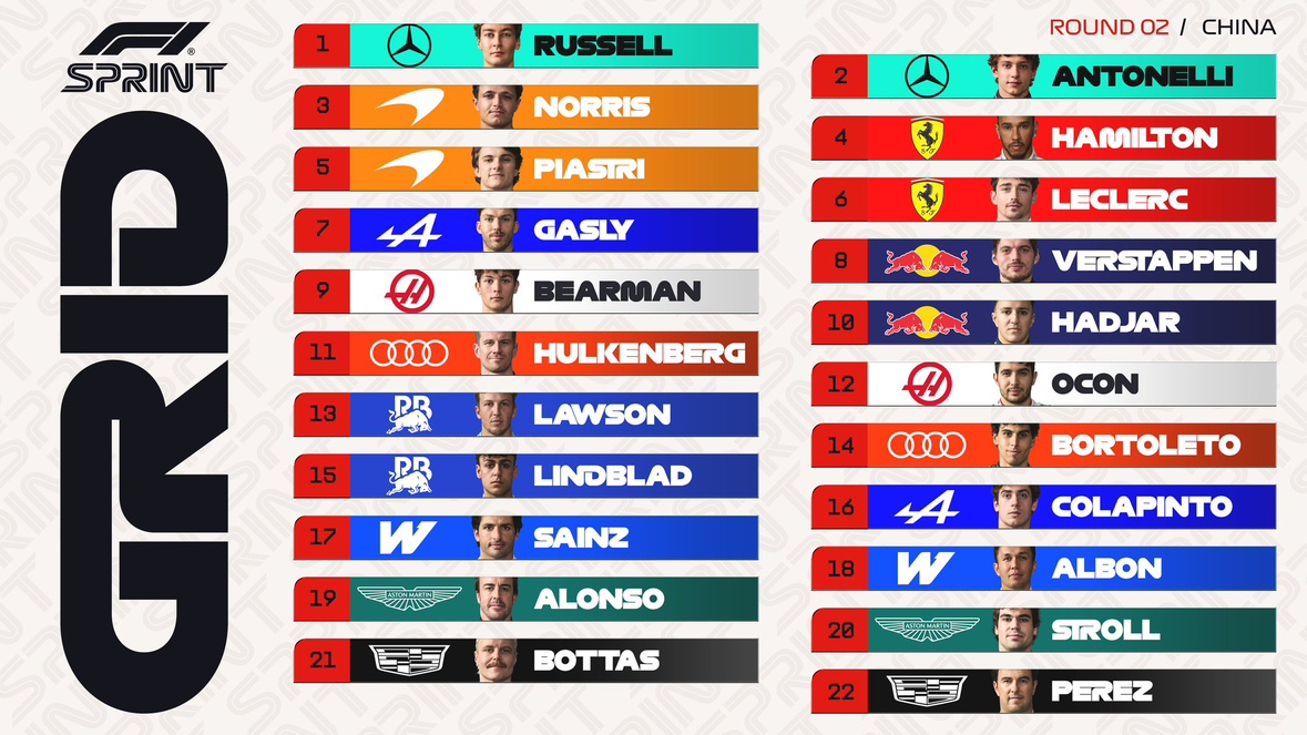 F1 중국 GP 스프린트 스타팅 그리드
