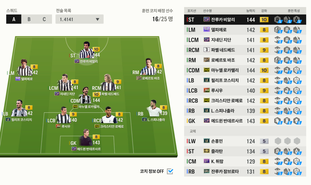 4123보다 4141이 MF격앙 효과를 받아서 효율이 좋고, 수비 가담이 훨씬 안정적입니다.