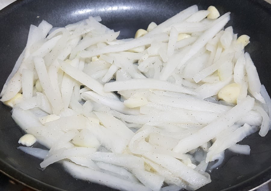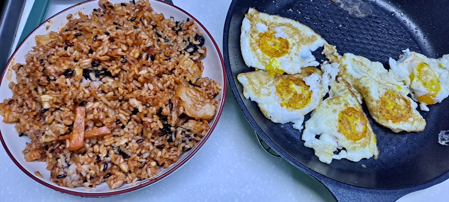 단무지 넣고 김 넣고 소금넣고 그냥 볶았어요