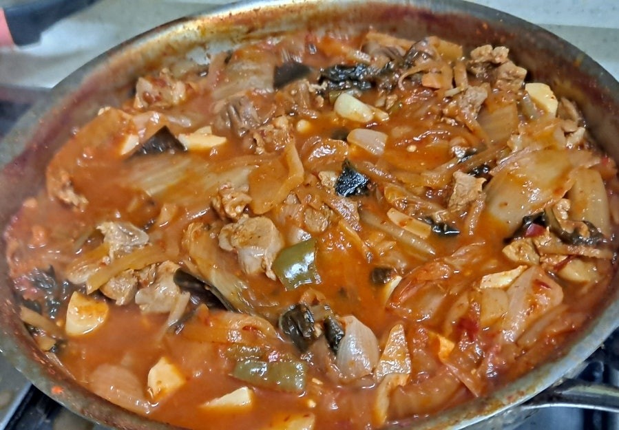 보글보글 끓는 돼지 고기 김치 볶음