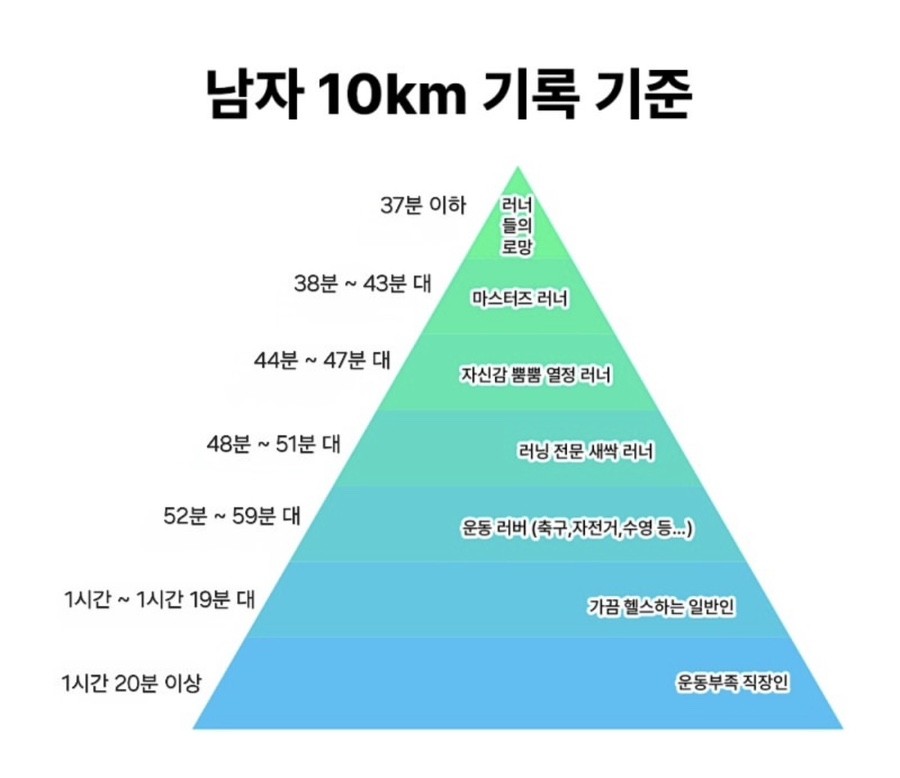 남자 10km 러닝 기준 내 수준은?