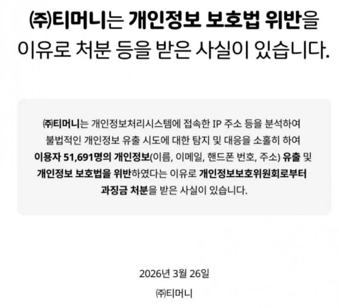 5.1만명 개인정보 털린 티머니 앱 공지사항
