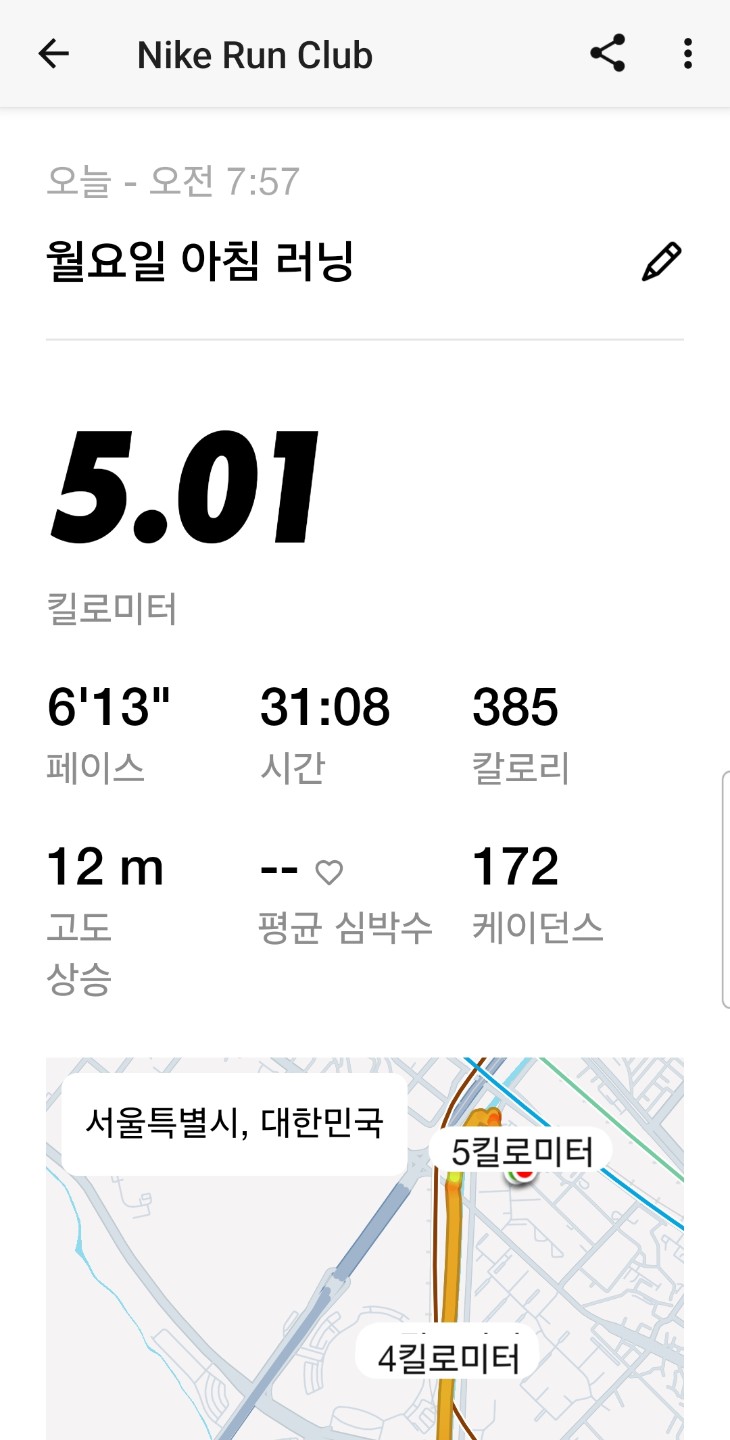 오늘은 짧게 5km