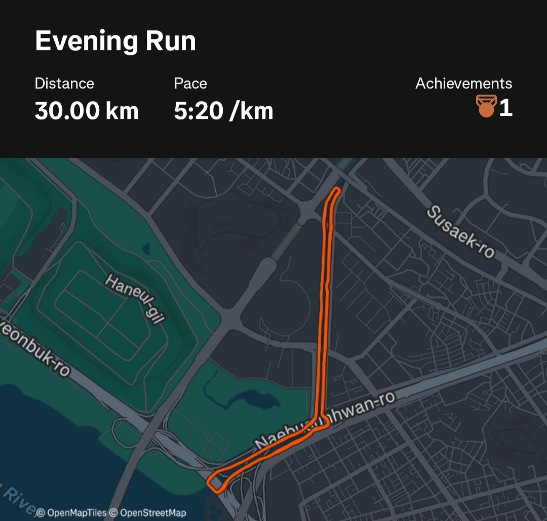 Q. 혼자 러닝할 때 가장 즐거운 순간은 언제인가요? 목표지점까지 탈없이 완주했을때.