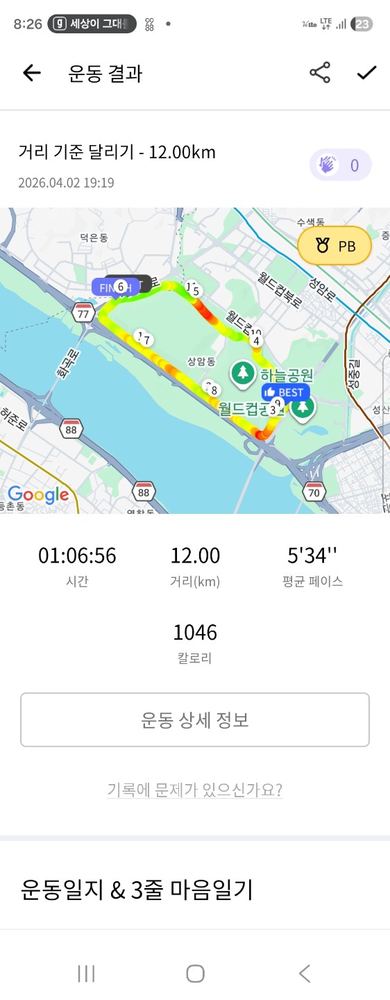 잘 뛰었다. 날씨도 좋다