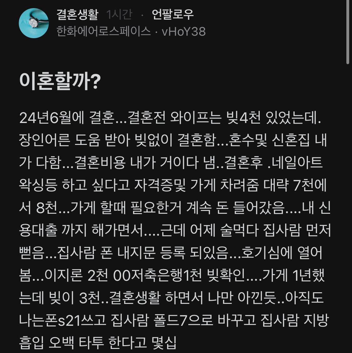 저의 사연에 대해 의견을 듣고싶네요.