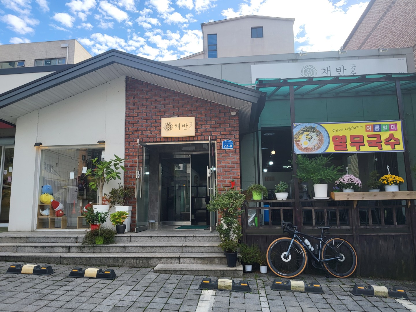 자전거 타고 맛집 탐방 하고 있어요.