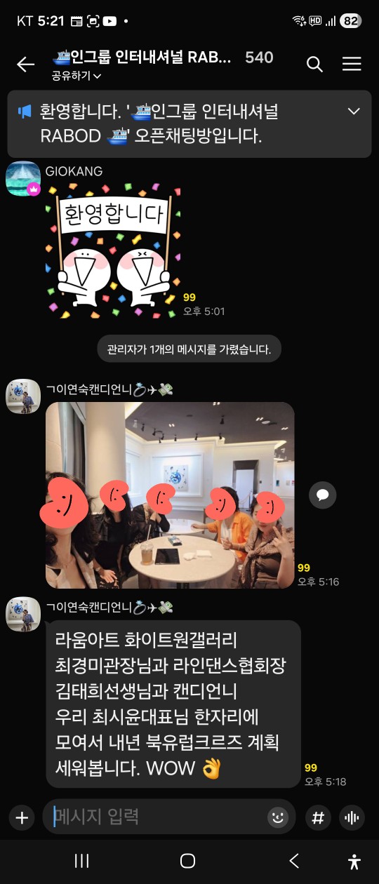 회원님들 서로 소통을 원활하게 하기 위하여 다들 단체 챗팅방으로 입장해 주세요~~~^^
