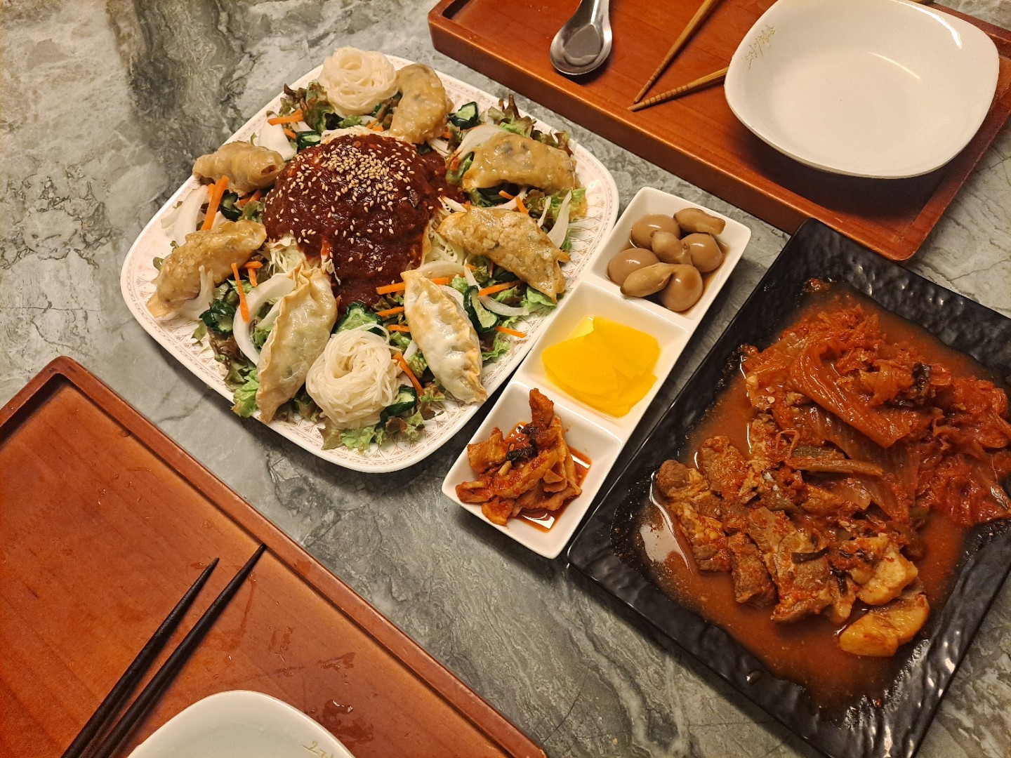 냉장고에 양배추가남아서 야채비빔만두와 저번에 만든 김치찜으로 저녁을 해결해봐요
