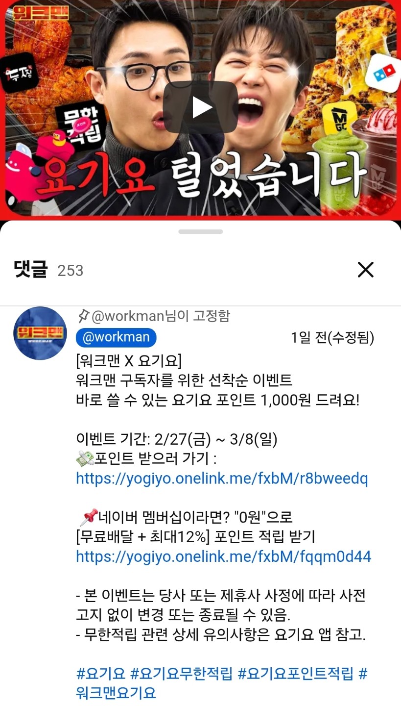 정보)요기요 포인트 1000원 선착순증정