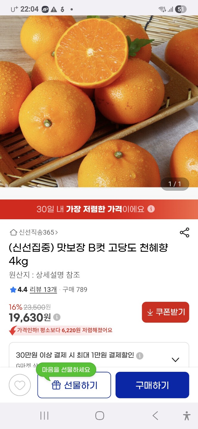 천혜향 4키로 핫딜 19,630원 공유