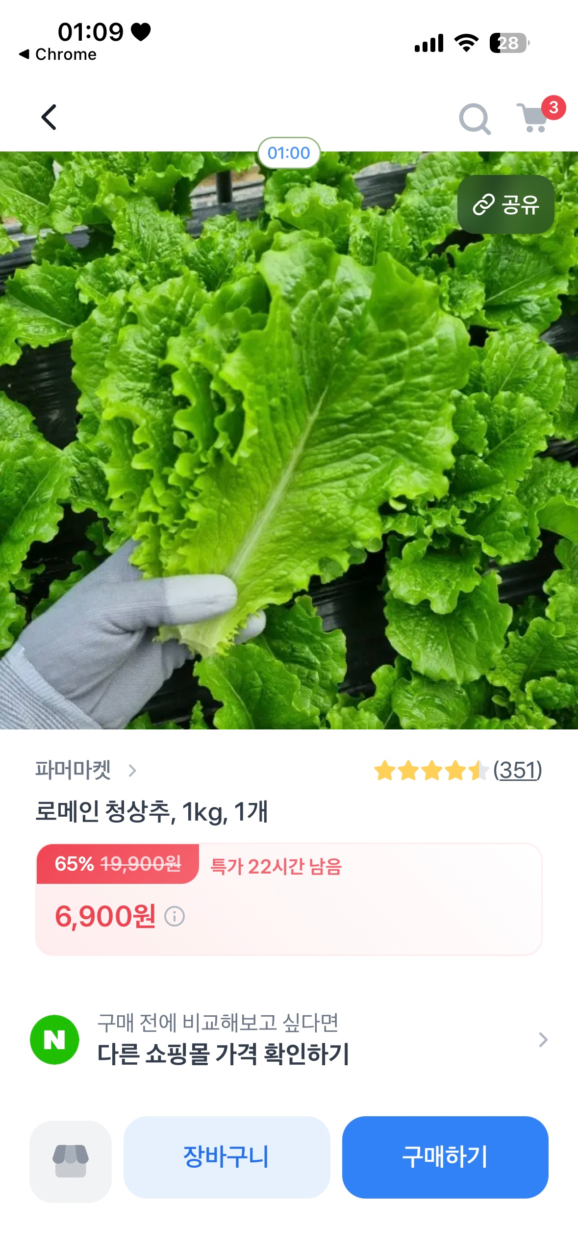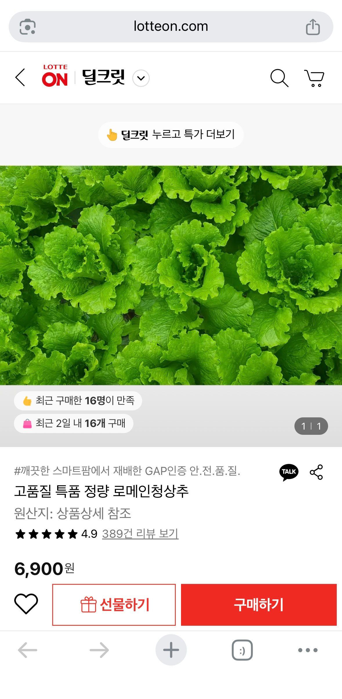 로메인 청상추 1kg (6,900원/무료배송)