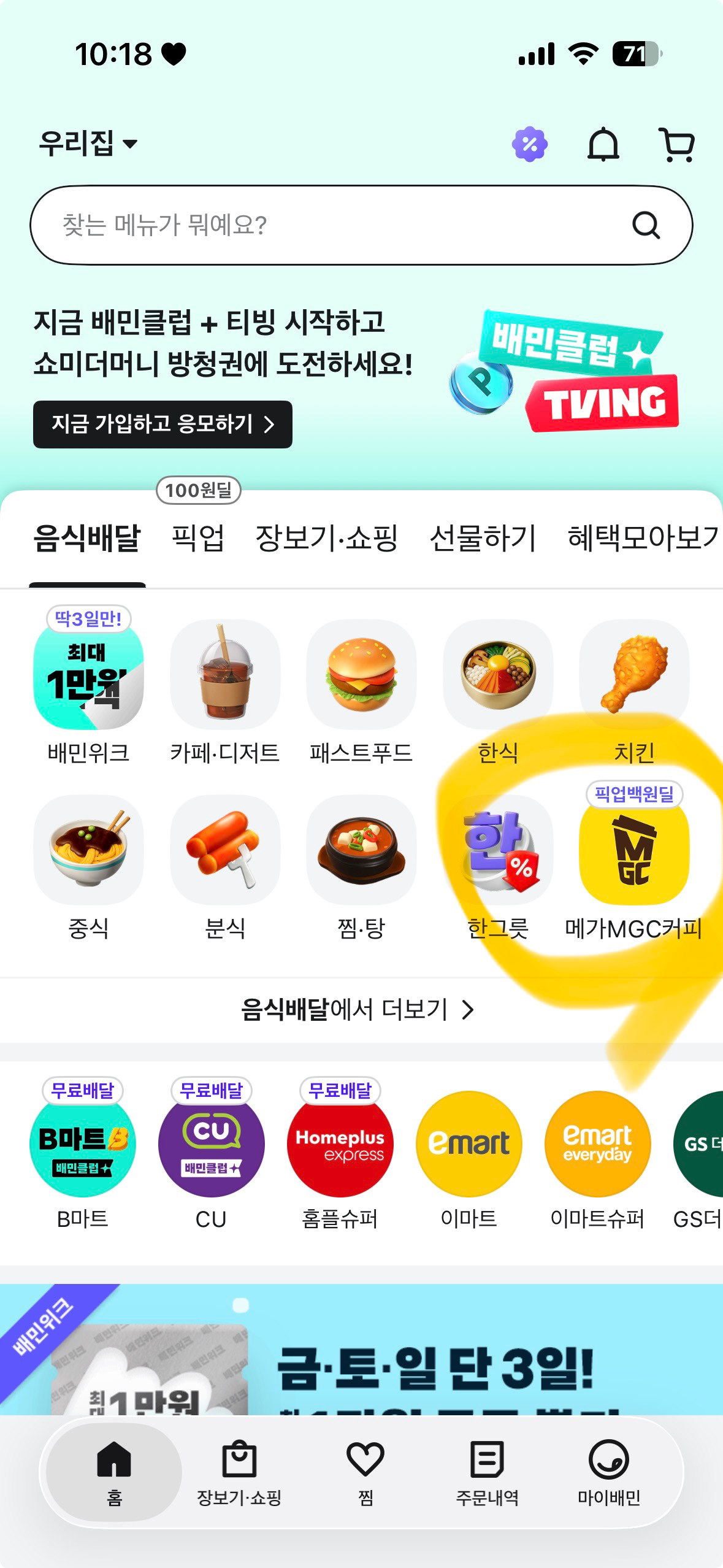 메가커피 100원 픽업