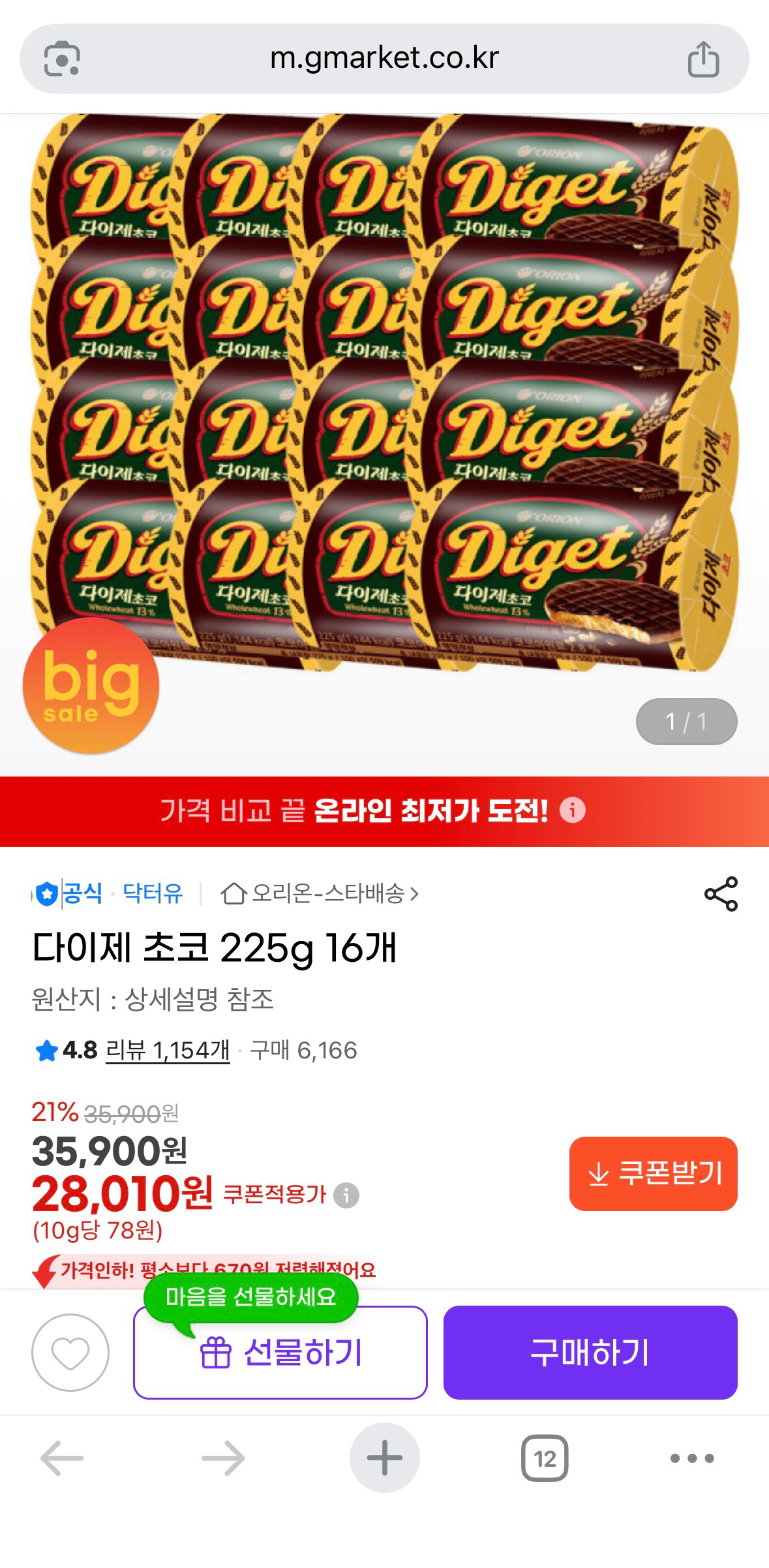 과자 좋아하시나요? 다이제 16개 28,010원