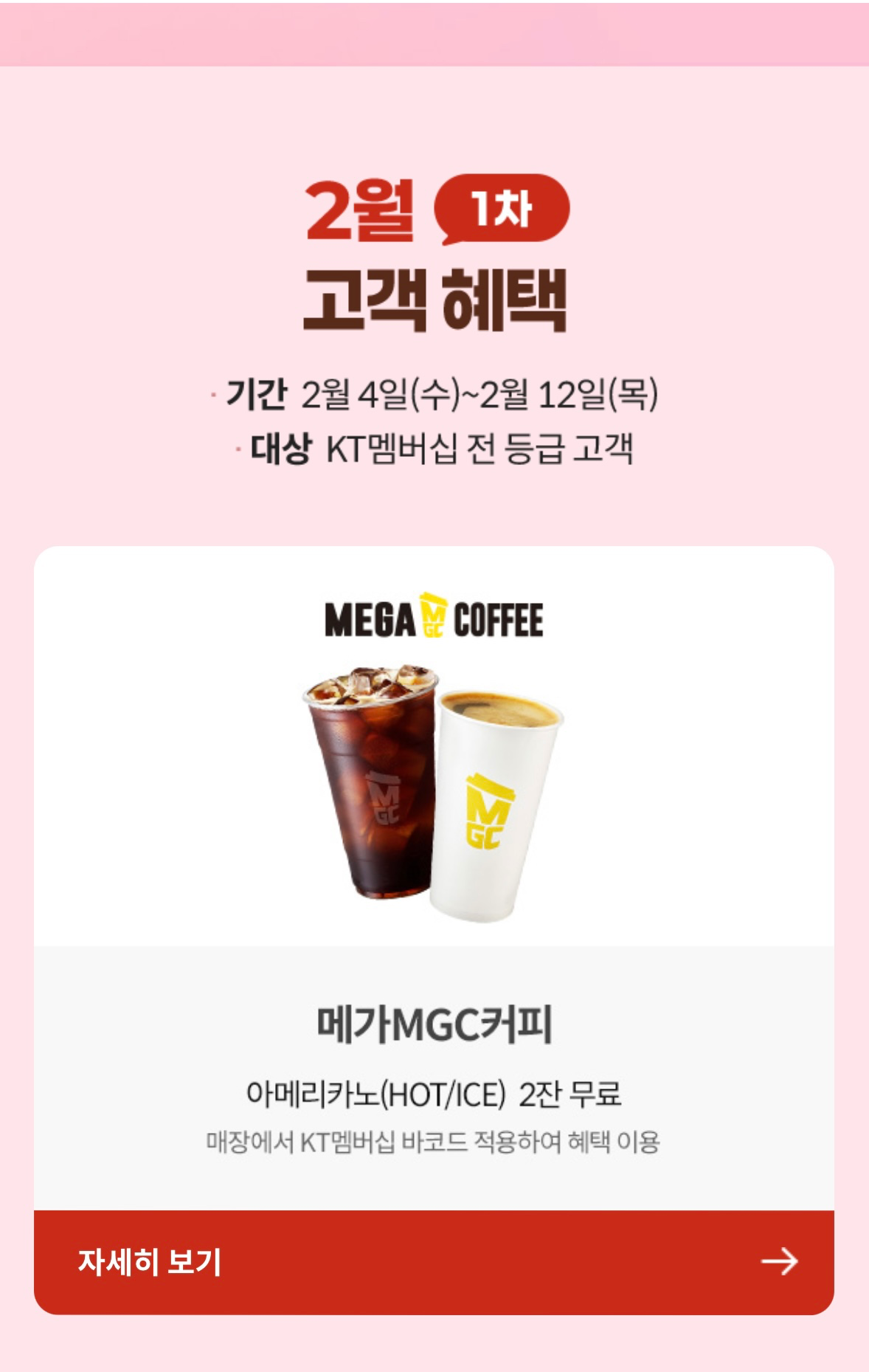 KT 고객보상프로그램 메가커피 2잔 무료