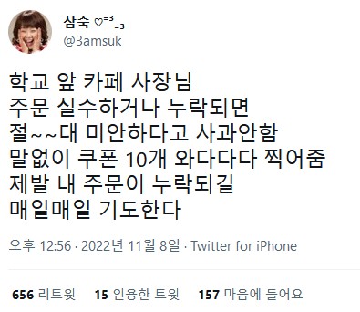 절대로 미안하다 사과 안하는 카페 사장