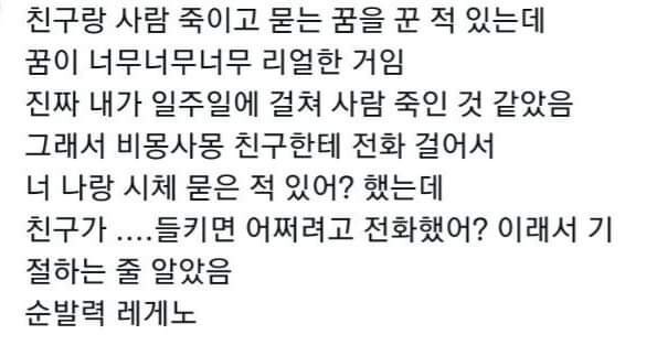 친구랑 사람 죽이고 묻는 꿈을 꾼 적 있는데