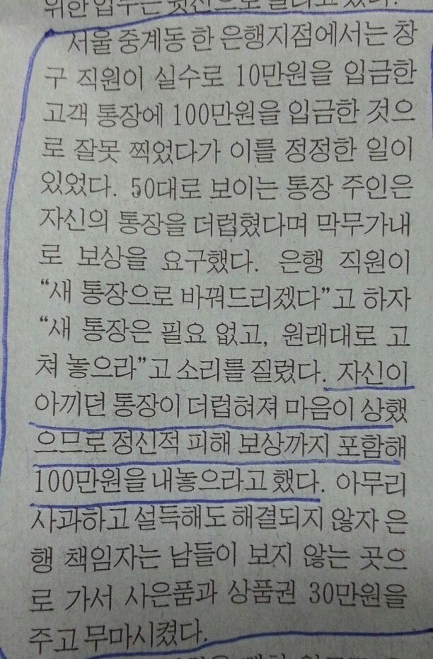 통장이 더럽혀져서 마음이 상함