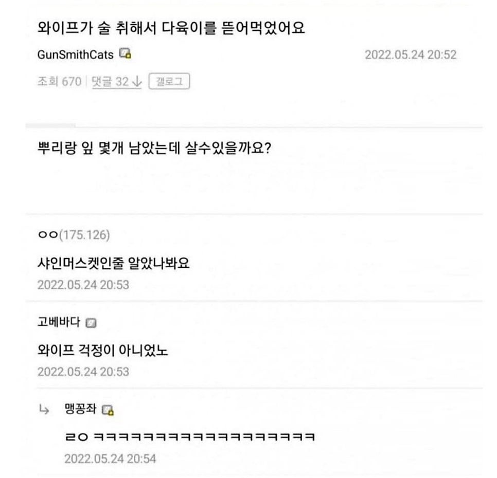 아내가 술먹고 다육이를 뜯어먹었어요.